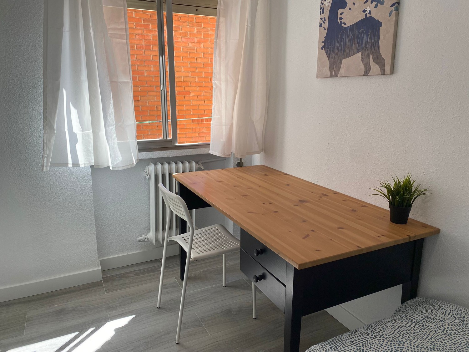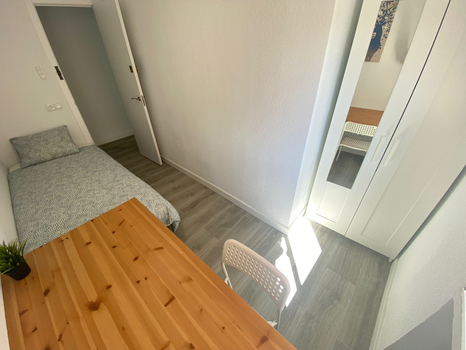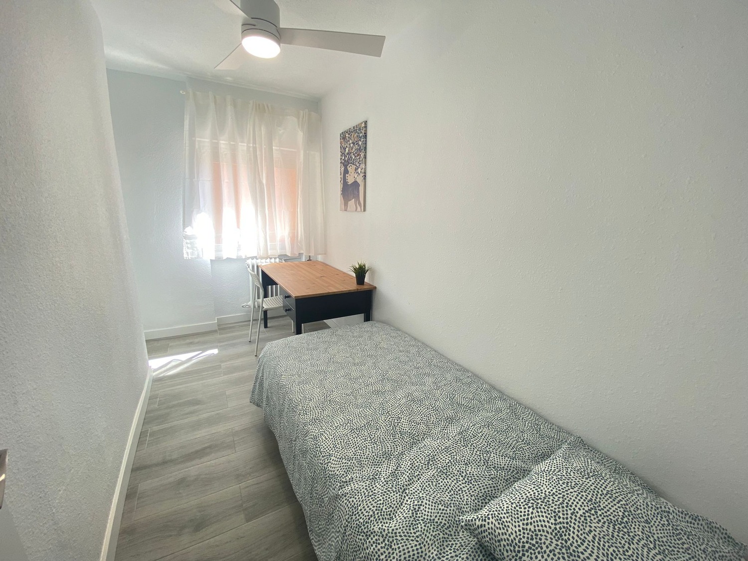 La habitación, con sus 7 m², es luminosa y está totalmente equipada para proporcionar confort y funcionalidad. Entre los complementos se incluye una confortable cama individual de 1.05 m, completa con almohadas, un juego de sábanas y un edredón para asegurar un descanso óptimo, todo a estrenar. Además, cuenta con un armario equipado con perchas, un escritorio de estudio diseñado para tus momentos de trabajo o estudio, y calefacción por gas natural y ventilador de techo para mantener un ambiente cálido y acogedor en todo momento.