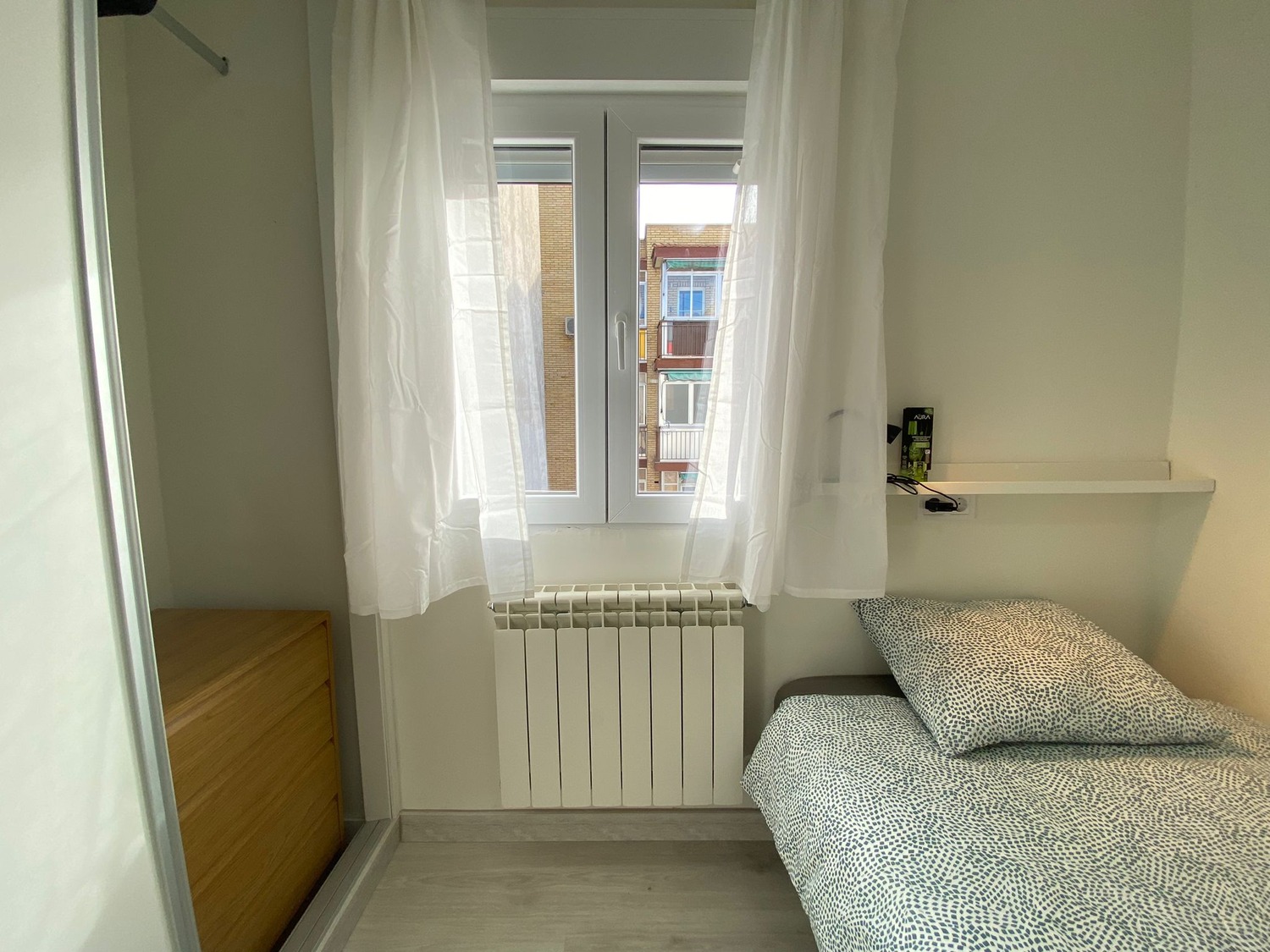 Capital Rooms alquila esta habitación en piso compartido zona comercial de Calle Alcalá. Ubicado Calle Amos de Escalante 12. Alquilamos esta habitación privada INDIVIDUAL, perfectamente acondicionada y con iluminación natural, con una superficie aproximada de 8m2. Cuenta con un escritorio cómodo con flexo y una silla. El mobiliario se completa con un armario empotrado —en cuyo interior incluye una barra para las perchas— ventilador de techo con mando a distancia y calefacción por gas natural, la cama de ancho de 1,05 m. La vivienda cuenta con las siguientes zonas comunes: una cocina, equipada con vitrocerámica y campana, una amplia zona común con 2 barras para desayunar o almorzar, microondas y frigorífico. Cada habitación tiene un menaje propio (cubertería completa de uso exclusivo para cada huésped). Posee 1 baño completo con plato de ducha de cómodo acceso desde cualquier habitación y dotado de excelentes calidades. Limpieza dos veces al mes de las zonas comunes. Wifi de alta velocidad. La casa cuenta con lavadora propia. Puedes disfrutar de su inmejorable ubicación, provista de todo tipo de servicios: centro comercial Alcalá Norte, varios supermercados, restauración, bancos, centro de salud y farmacias, etc. A 130 metros de les estación de Metro Pueblo Nuevo, Línea 7, (COLOR NARANJA) y a sólo 6 minutos a pie de la estación de metro Ciudad Lineal, Línea 5 (COLOR VERDE). La zona, además, goza de varias líneas de autobús en las proximidades. Disfrute de esta estancia acogedora, con una excelente convivencia controlada por profesionales.