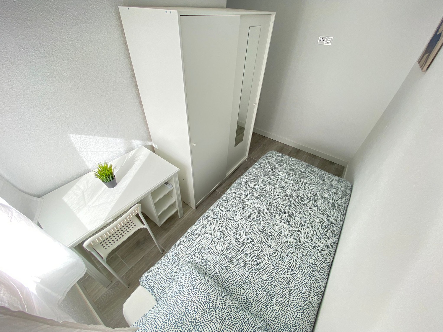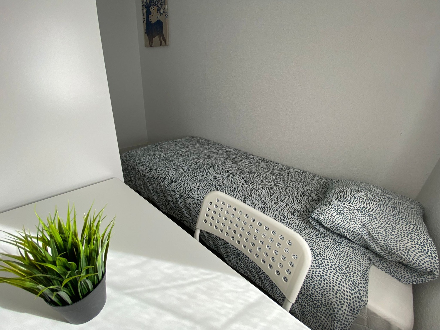 ¡Bienvenidos a “Hortaleza”! Capital Rooms alquila, ¡Estupenda habitación privada en alojamiento de estudiantes y jóvenes trabajadores recientemente reformado, a estrenar!. Alquilamos esta habitación privada con cerradura, perfectamente acondicionada y con iluminación natural, con una superficie aproximada de 8m2. Cuenta con un escritorio cómodo, una silla de conferencia. El mobiliario se completa con un armario—en cuyo interior incluye tendedero y una barra para las perchas— Ventilador de techo con mando a distancia y calefacción eléctrica, la cama de ancho 1,09 m. La vivienda cuenta con las siguientes zonas comunes: Una cocina, equipada con electrodomésticos nuevos: vitrocerámica, campana, microondas y frigorífico. Con todo menaje necesario (cubertería completa de uso exclusivo para cada huésped). Posee 2 baños completos con plato de ducha de cómodo acceso desde cualquier habitación y dotados de excelentes calidades. Otros servicios añadidos: Limpieza dos veces al mes de las zonas comunes. Wifi de alta velocidad. Calefacción eléctrica y lavadora propia. Puedes disfrutar a de su inmejorable ubicación, a 350 metros del metro Parque de Sta. María, Línea 4, (COLOR MARRON), con conexión directa a PINAR DE CHAMARTIN, CANILLLAS, BILBAO, ARGUELLES, y varias líneas de autobuses. A solo 2 minutos del Mercadona, 4 minutos del Carrefour y 5 minutos del Ahorramas. Disfruta de esta estancia acogedora, en un ambiente respetuoso y bien cuidado y, con una excelente convivencia, controlada por profesionales.
