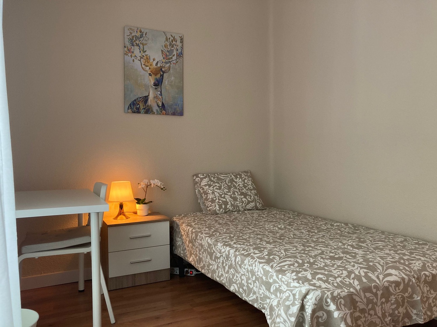 Habitación INDIVIDUAL en piso compartido, con cama de 90, armario de un metro, la habitacion se encuentra frente al estadio del Rayo Vallecano, a 2 minutos de avenida La Albufera, cerca de la estación del metro de Portazgo y Nueva Numancia, lineas de autobuses, supermecados, bancos y comercios de todo tipo. Piso muy acogedor, buen ambiente, encontraras todo lo necesario para tu estancia. Gestionado por profesionales. Dos baños, calefacción por gas natural, frigorífico. Gastos no incluidos