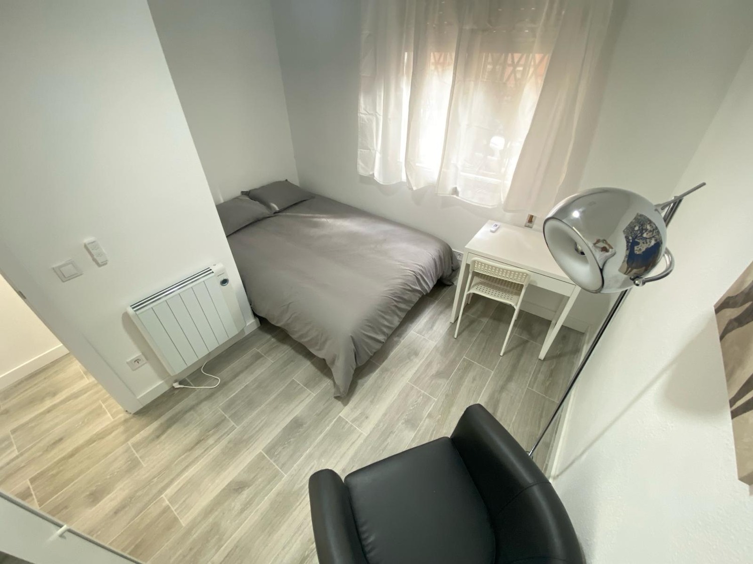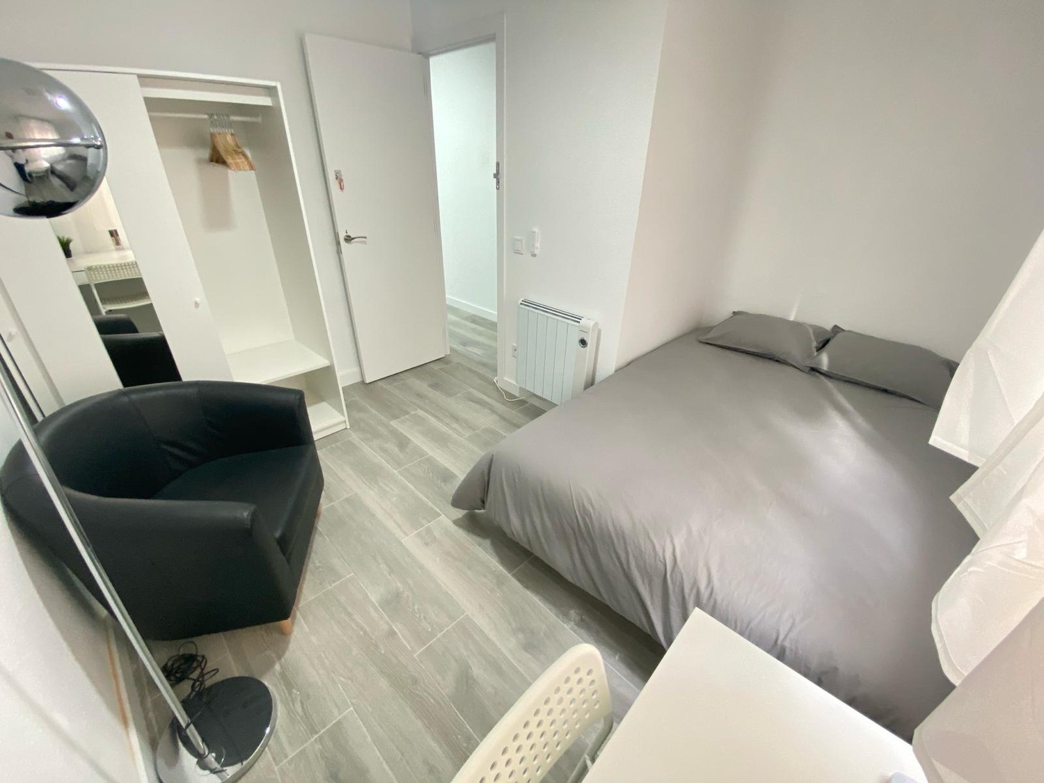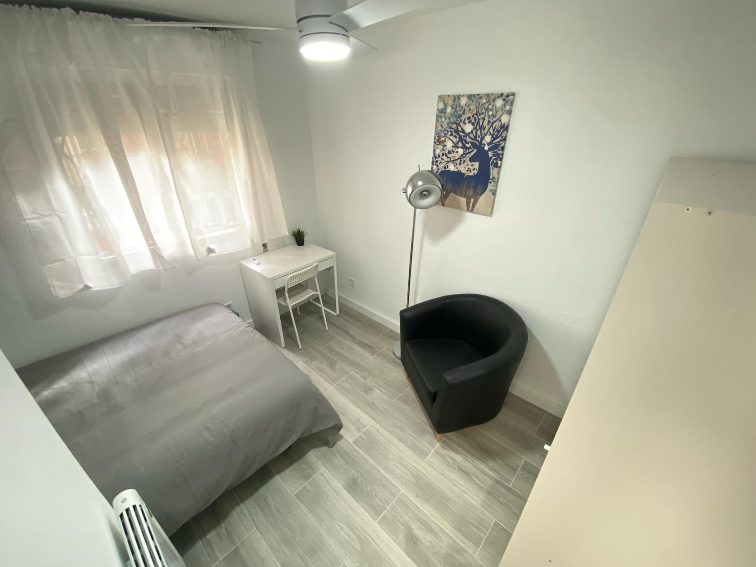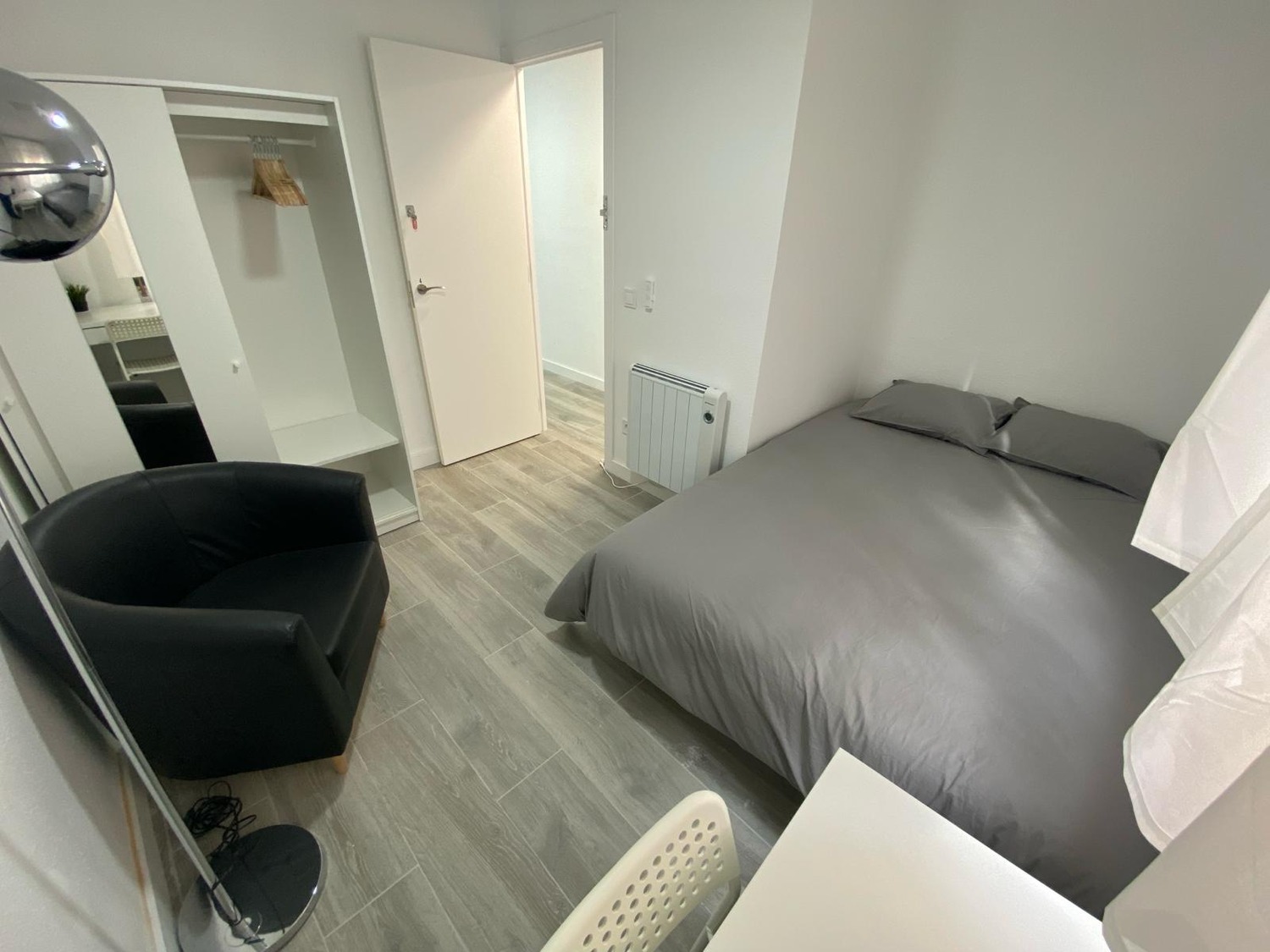 Tu nuevo rincón acogedor te espera, equipado con todo lo necesario: cama individual 1.35cm, armario con espejo, escritorio y silla para tus horas de trabajo o estudio y una ventana para bañarte en luz natural, un sillón individual para relajarte o leer un libro. Disfruta del equilibrio perfecto entre frescura y calidez, ventilador de techo con mando a distancia y calefacción eléctrica. Además, te ofrecemos acceso a zonas comunes con cocina completa, wifi de alta velocidad y baño completo compartido, todo mantenimiento con limpieza regular, a estrenar. Un espacio práctico y confortable, diseñado para tu bienestar..