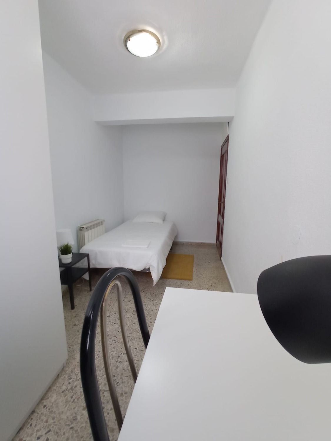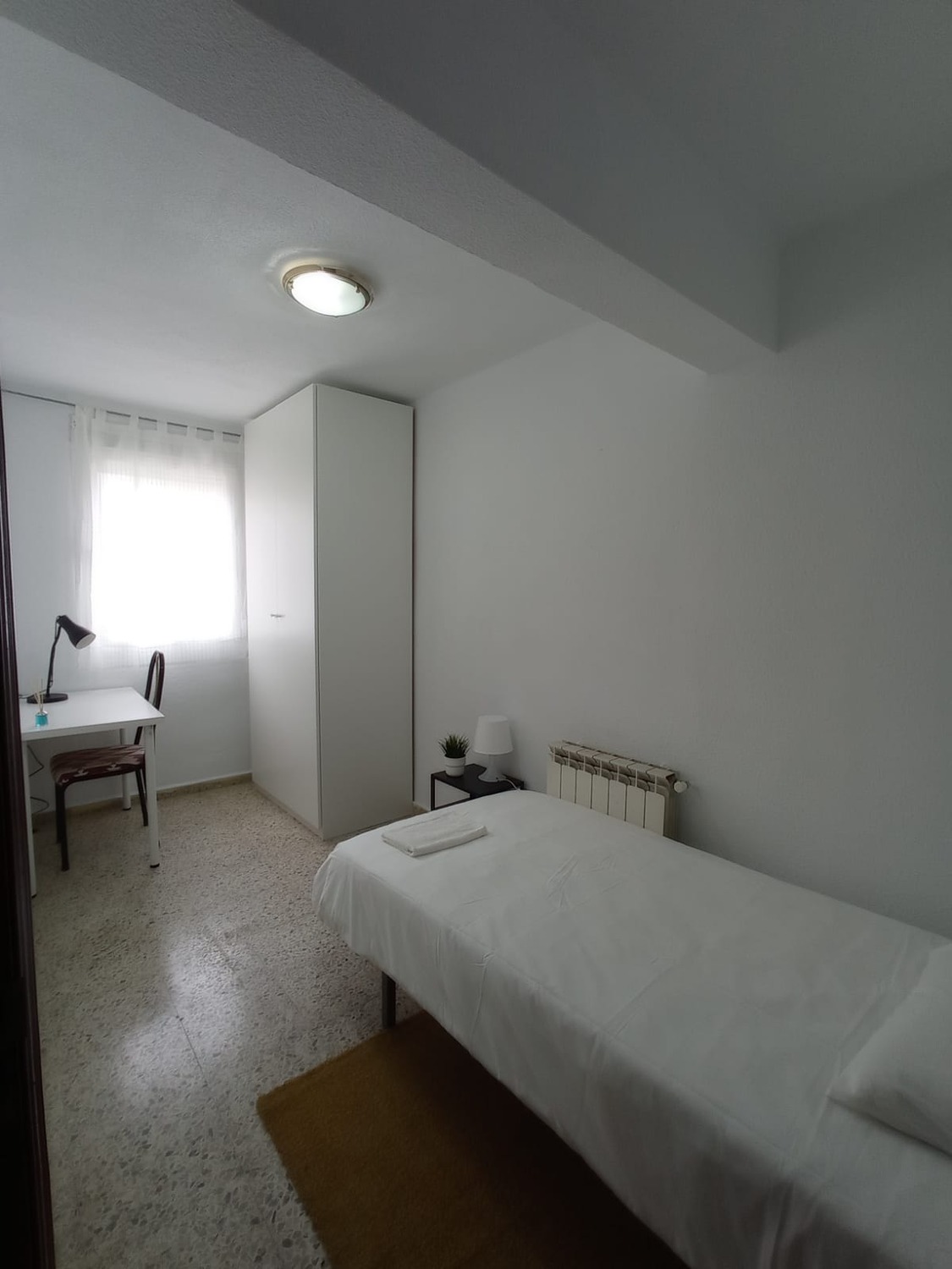 La habitación es muy luminosa y está perfectamente equipada, con los siguientes complementos: 1 cama de 1.05 m con almohada, juego de sábanas y edredón, mesitas de noche, armario, escritorio con silla, calefacción por gas natural individual.