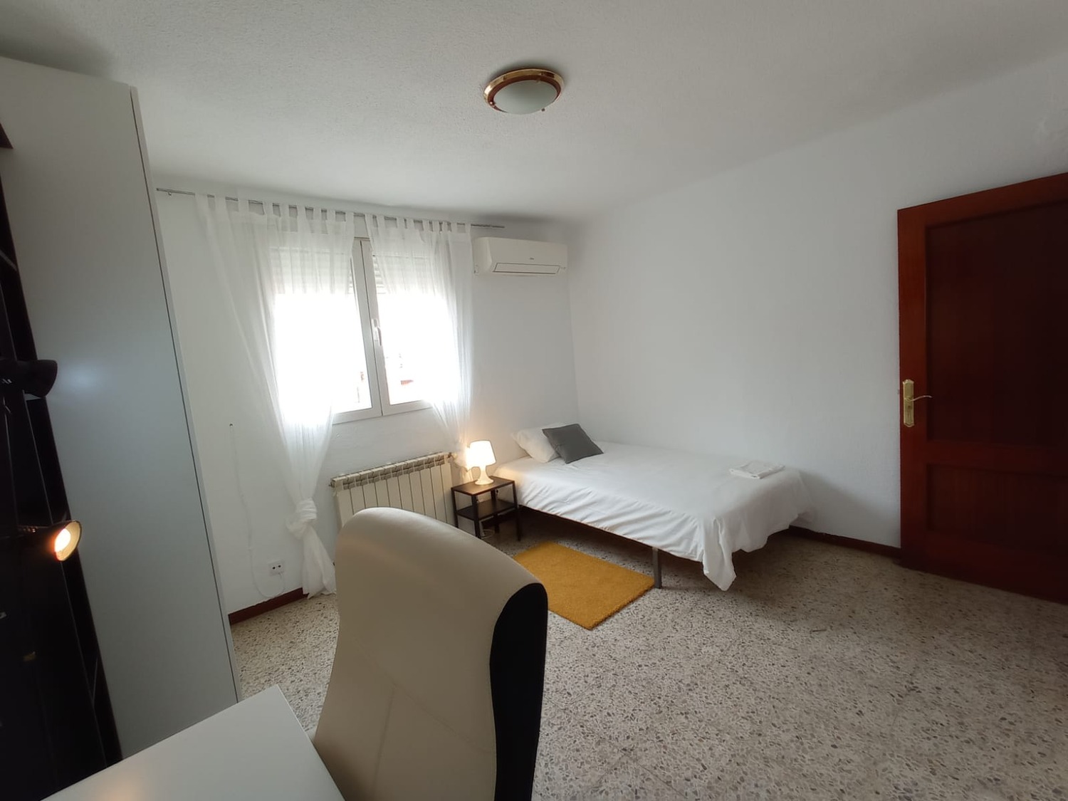 La habitación es muy luminosa y está perfectamente equipada, con los siguientes complementos: 1 cama de 1.05 m con almohada, juego de sábanas y edredón, mesitas de noche con lámpara, armario con espejo, escritorio con silla, perchero de pared, calefacción por gas natural individual. Todas las habitaciones incluyen conexión wifi por fibra de alta velocidad.