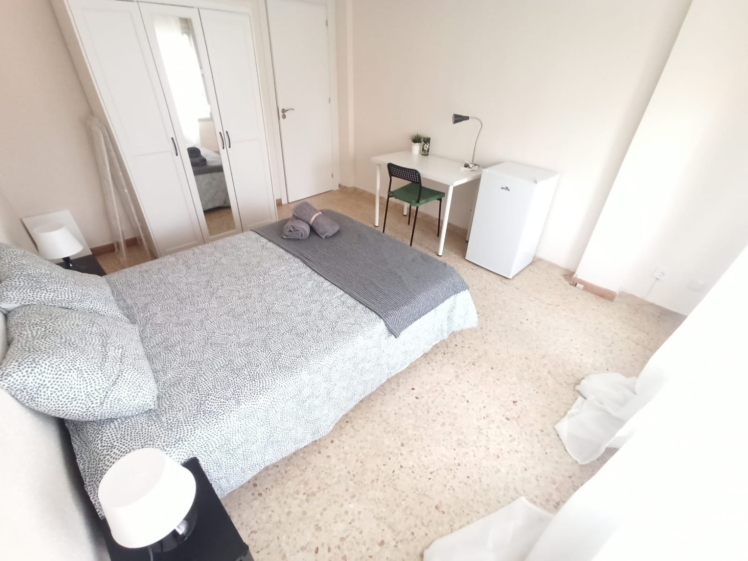 Capital Rooms alquila esta fantástica habitación doble en piso compartido con ascensor, ubicado en la C. de Braille, 20, 28034 Madrid, una de las zonas más concurridas y mejor comunicadas (a 3 minutos de Metro Fuencarral —línea 10— y con parada de autobús en la puerta del portal — líneas 66, 137), con un supermercado en la esquina y una comisaría de Policía muy próxima, bares, restaurantes y con todo tipo de servicios de la zona norte de Madrid. La habitación es luminosa y está perfectamente equipada, con los siguientes complementos: Nevera propia, 1 cama de 1,35 m con almohadas y cojines, juego de sábanas y edredón, mesita de noche con lámpara, un espacioso armario empotrado, calefacción por gas natural individual y cerramientos de doble cristal con las mejores calidades, ventiladores de techo todo esto decorado con buen gusto, y todo a estrenar. Todas las habitaciones incluyen cerradura con llave privada conexión wifi por fibra de alta velocidad. En cuanto a las zonas comunes, la vivienda cuenta con una amplia cocina, amueblada y equipada con todos los electrodomésticos (frigorífico, cocina, lavadora, caldera, microondas) y el menaje necesario (cacerolas, sartenes, cubertería y cristalería). Asimismo, la propiedad cuenta con espacio para poder almorzar, desayunar, etc. Y 2 baños amplio con plato de ducha compartido para las 5 habitaciones.