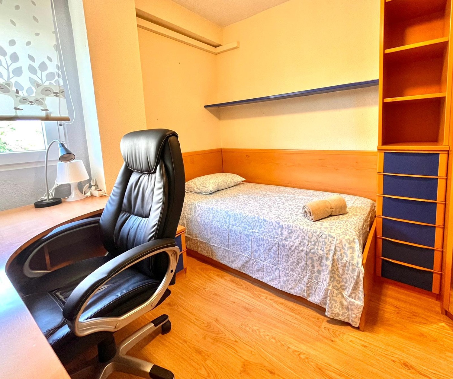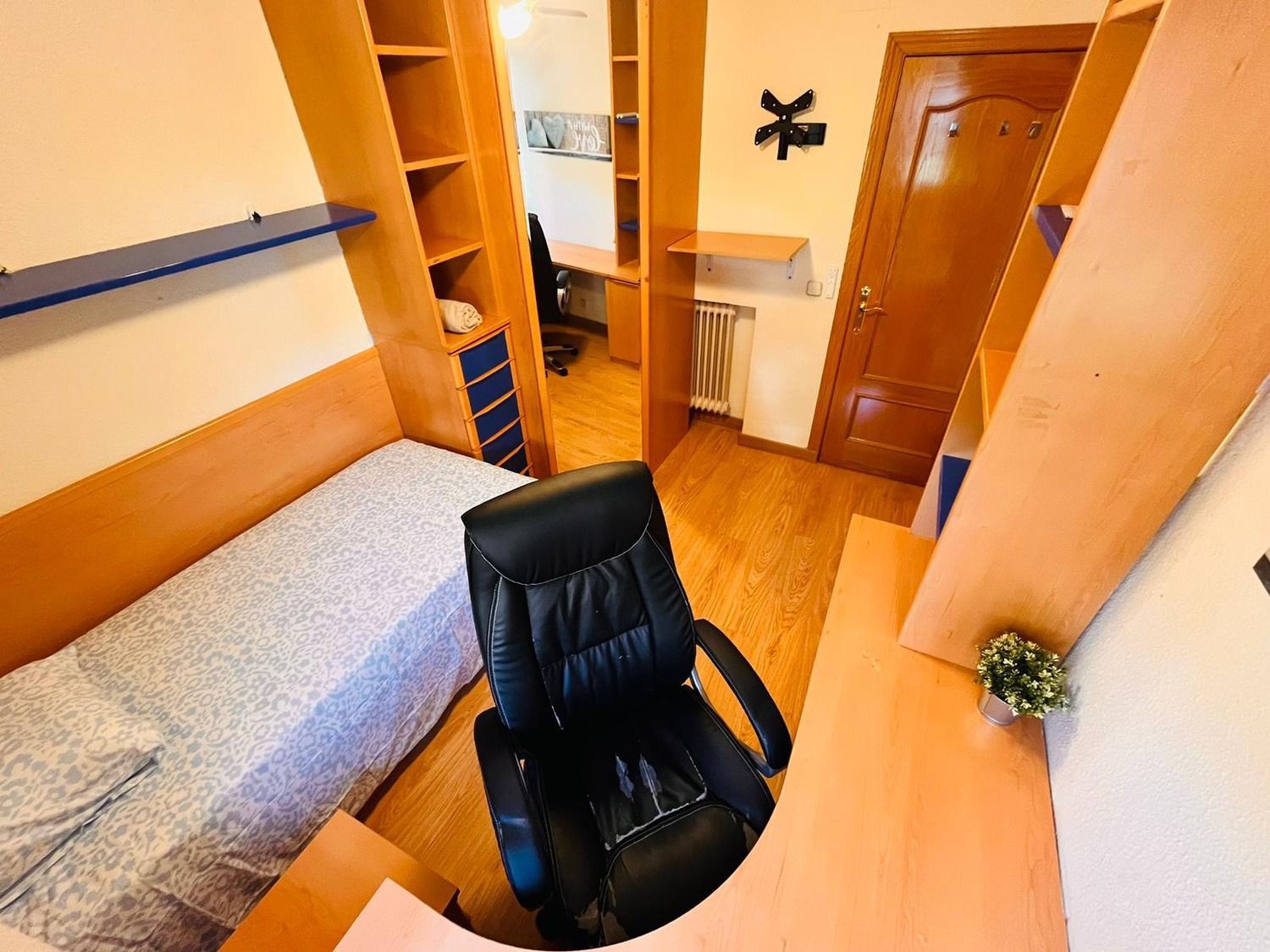 La habitación es luminosa y está perfectamente equipada, con los siguientes complementos: 1 cama de 1,35 m con almohadas, juego de sábanas y edredón, armario empotrado, escritorio con silla y lampara para tus horas de estudio, calefacción por gas natural. Servicio de limpieza de áreas comunes 2 veces al mes.