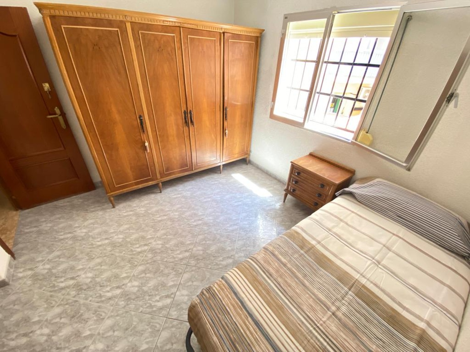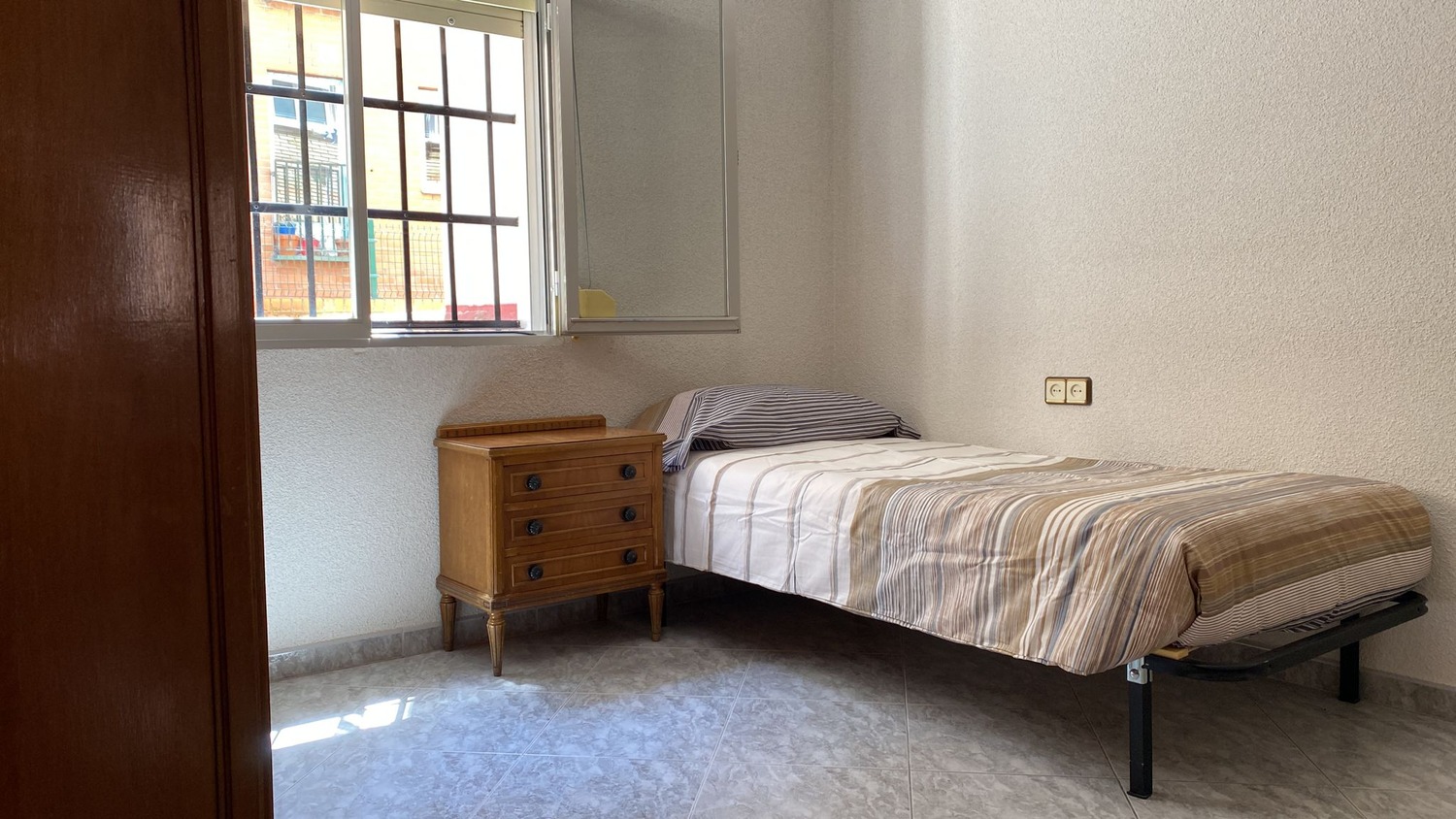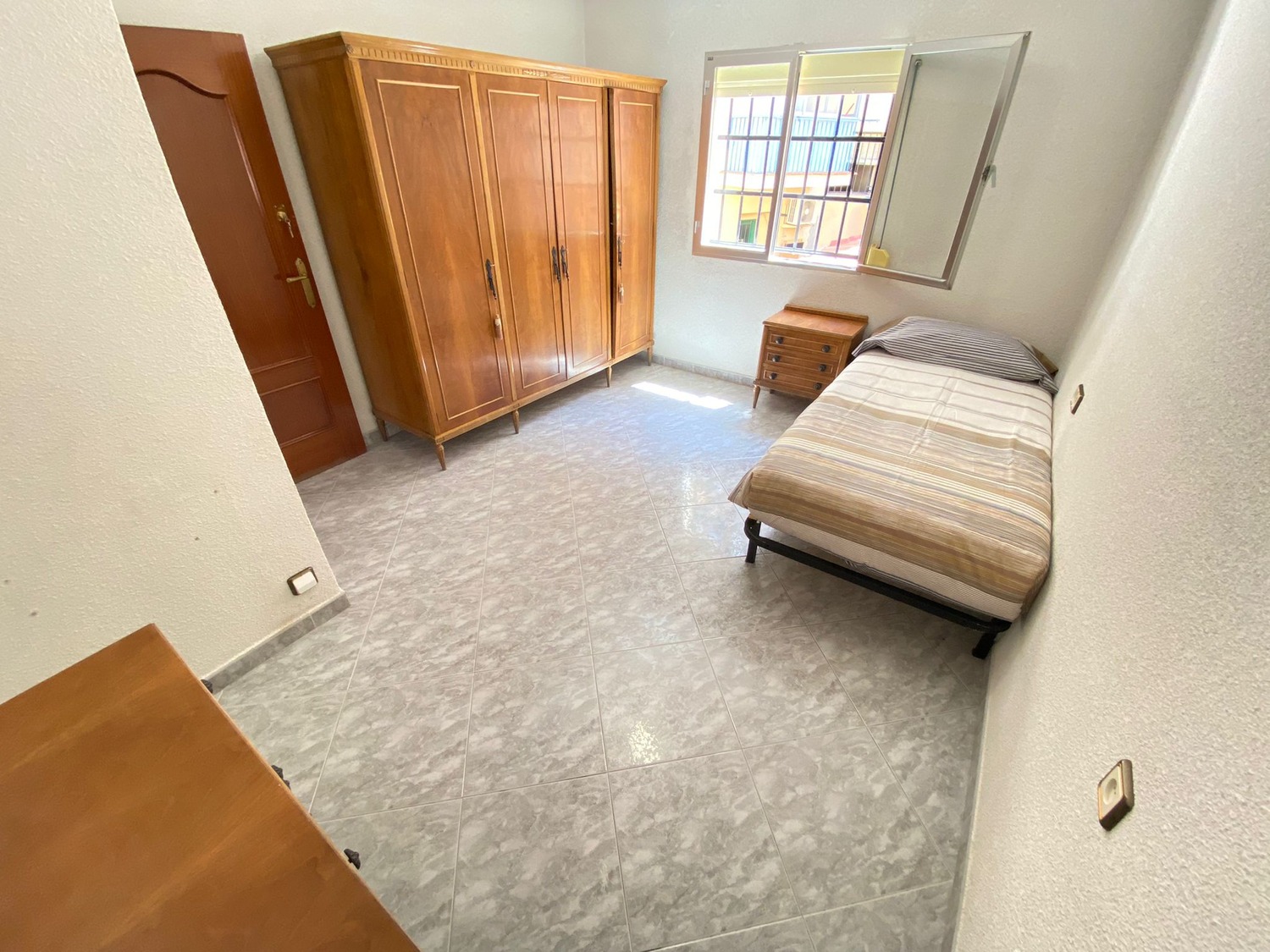 La habitación es luminosa y está perfectamente equipada, con los siguientes complementos: 1 cama de 1.05 m con almohada, juego de sábanas y edredón, mesita de noche con lámpara, armario y escritorio con silla. Calefacción eléctrica