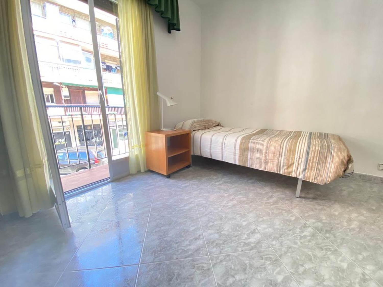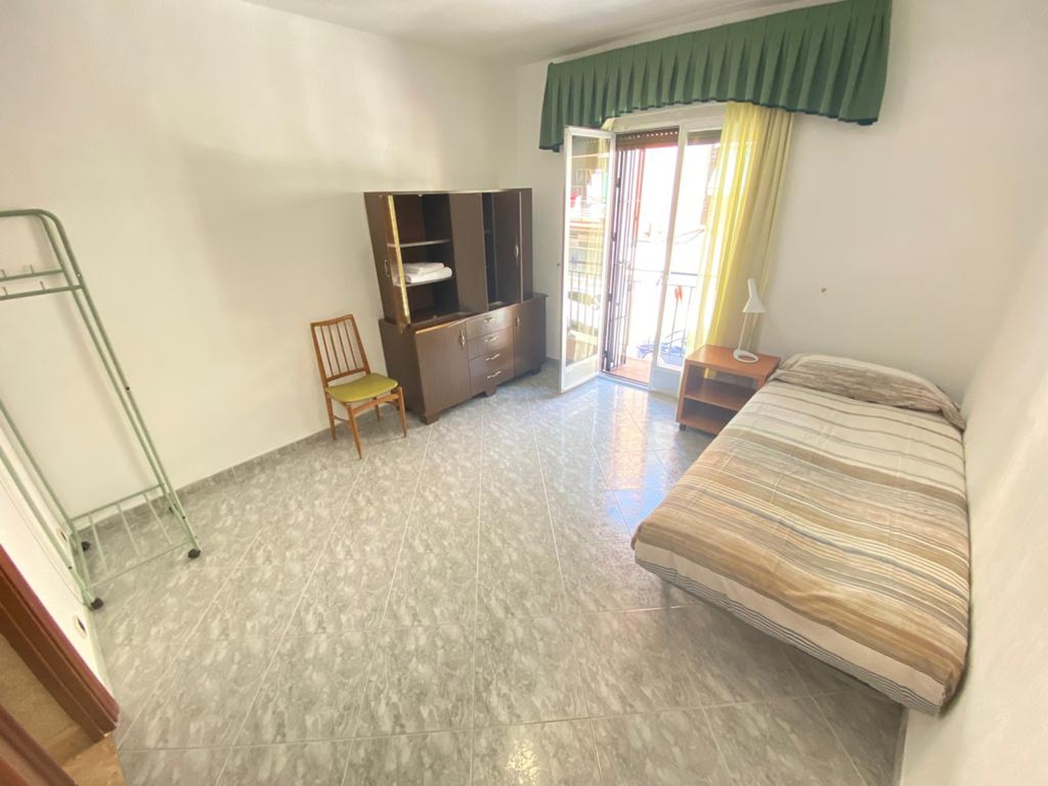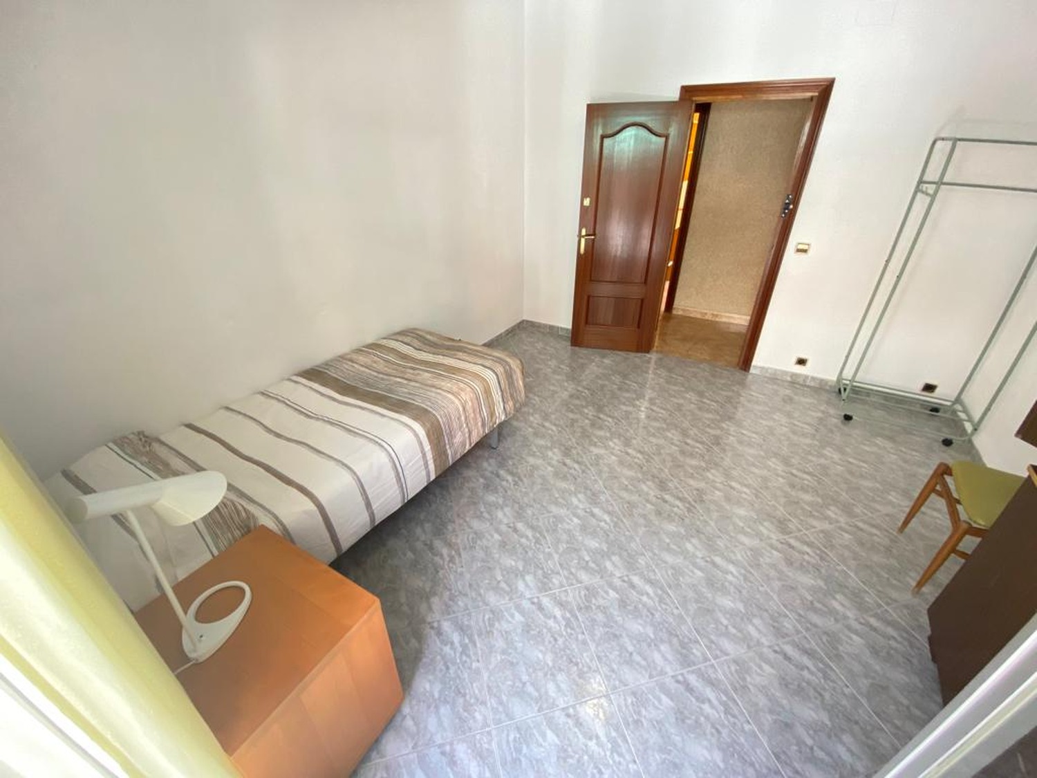 La habitación es luminosa y está perfectamente equipada, con los siguientes complementos: 1 cama de 1.05 m con almohada, juego de sábanas y edredón, mesita de noche con lámpara, armario con espejo.