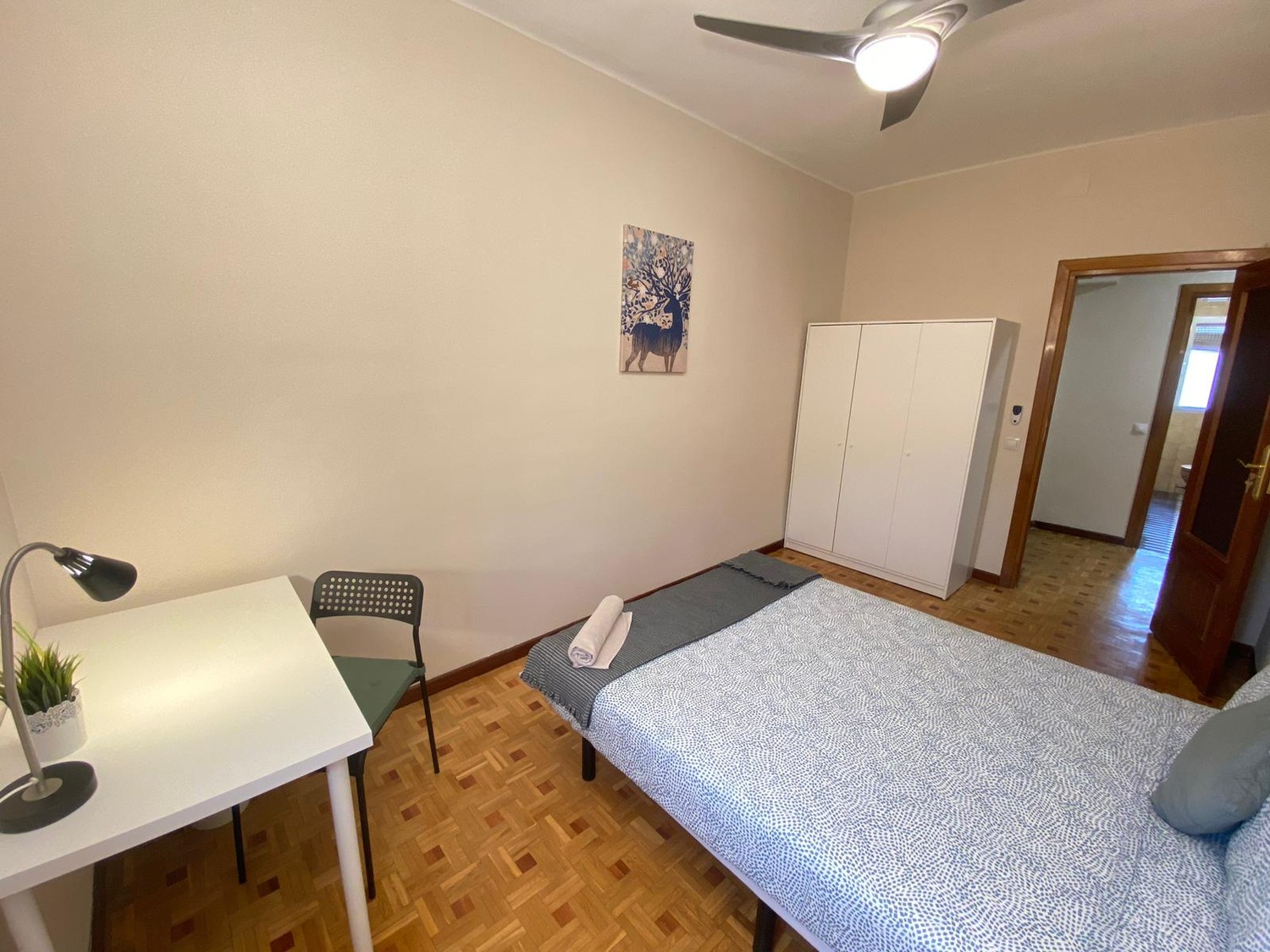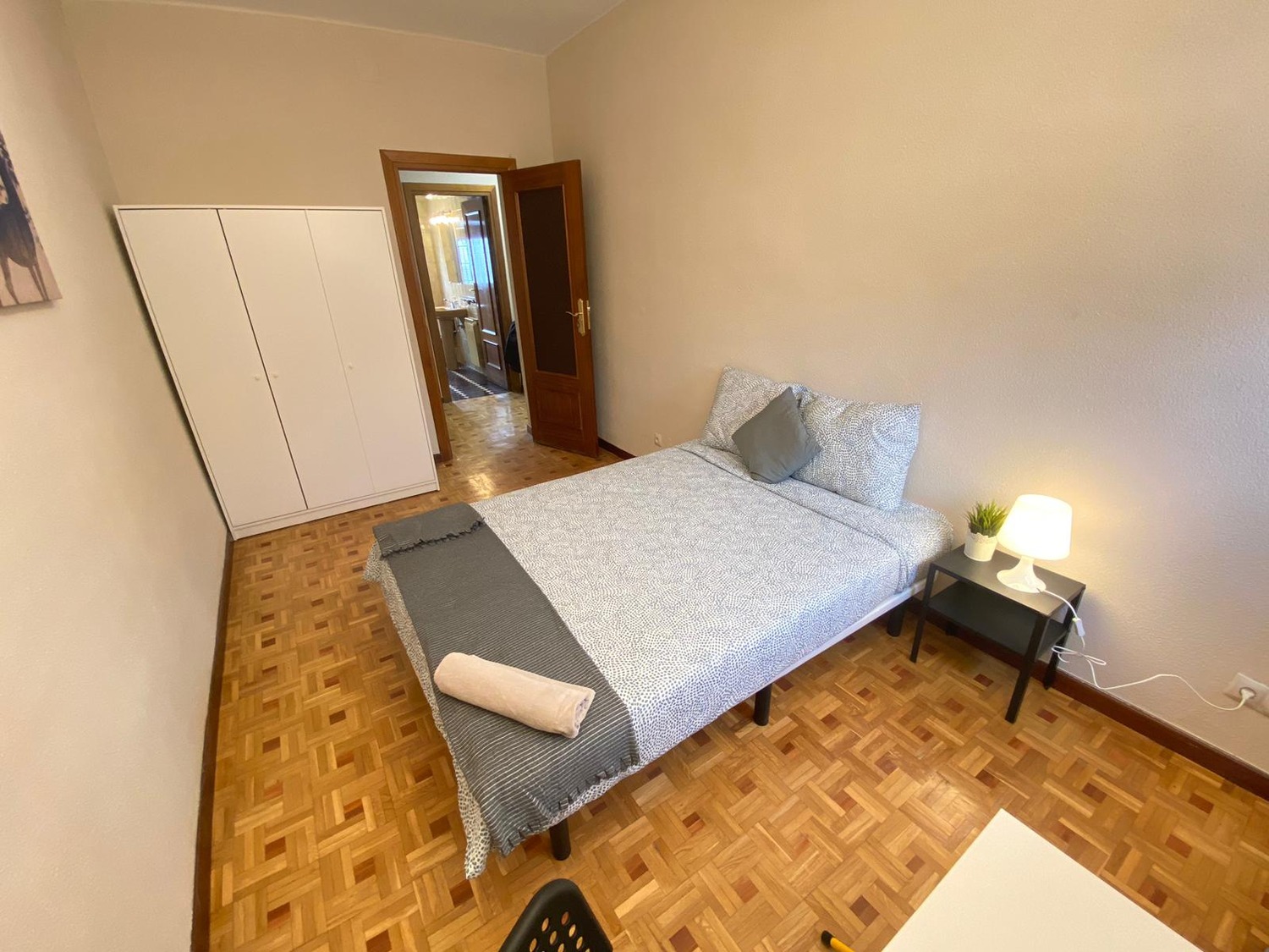 La habitación es luminosa y está perfectamente equipada, con los siguientes complementos: 1 cama de 1.05 m con almohadas y cojines, juego de sábanas y edredón, mesita de noche con lámpara, un espacioso armario, calefacción por gas natural individual y cerramientos de doble cristal con las mejores calidades.