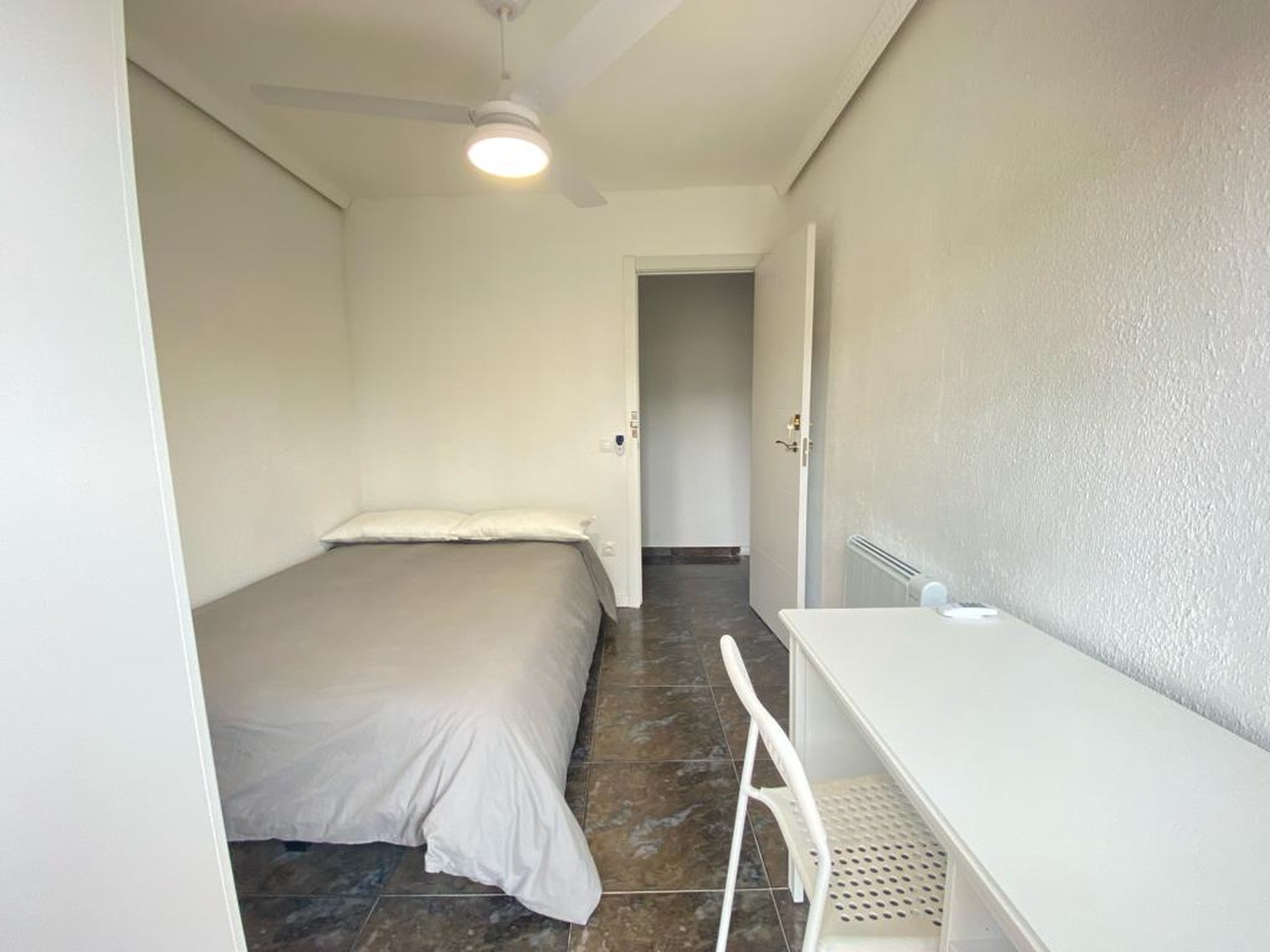 Estupenda habitación individual privada en alojamiento reformado en 2023. Cuenta con un escritorio cómodo con silla, un armario de tres cuerpos con espejo, ventilador de techo con mando a distancia y calefacción por eléctrica, la cama de ancho 1,35m con ropa de cama y nórdico. La vivienda cuenta con las siguientes zonas comunes: Una amplia cocina con barra para desayunar o almorzar, con menaje y equipada con electrodomésticos nuevos: vitrocerámica, campana, microondas y frigorífico. Posee 1 baño completo con plato de ducha de cómodo acceso desde cualquier habitación y dotados de excelentes calidades. Se entrega ropa de cama y nórdico. Limpieza dos veces al mes de las zonas comunes. Wifi de alta velocidad. La casa cuenta con lavadora propia. Puedes disfrutar de su inmejorable ubicación, a 550 metros del metro Villaverde bajo, Línea 3, (COLOR AMARILLO), con conexión directa a MONCLOA, PLAZA DE ESPAÑA, CALLAO, SOL y varias líneas de autobuses, a 15 minutos de la estación de Atocha ya 10 minutos de la Puerta del Sol, a 12 min en Metro al Campus Sur de la UPM, 30 min en Metro y 10 min en coche a Ciudad Universitaria.