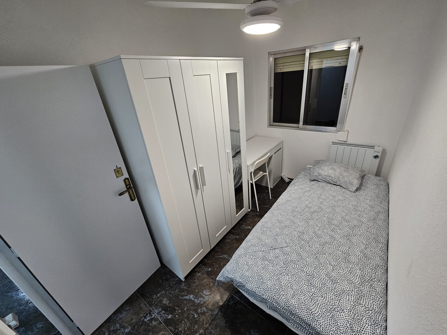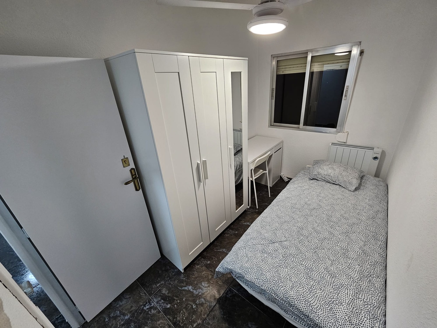 Estupenda habitación individual privada en alojamiento reformado en 2023. Cuenta con un escritorio cómodo con silla, un armario de tres cuerpos con espejo, ventilador de techo con mando a distancia y calefacción por eléctrica, la cama de ancho 0,90m con ropa de cama y nórdico. La vivienda cuenta con las siguientes zonas comunes: Una amplia cocina con barra para desayunar o almorzar, con menaje y equipada con electrodomésticos nuevos: vitrocerámica, campana, microondas y frigorífico. Posee 1 baño completo con plato de ducha de cómodo acceso desde cualquier habitación y dotados de excelentes calidades. Se entrega ropa de cama y nórdico. Limpieza dos veces al mes de las zonas comunes. Wifi de alta velocidad. La casa cuenta con lavadora propia. Puedes disfrutar de su inmejorable ubicación, a 550 metros del metro Villaverde bajo, Línea 3, (COLOR AMARILLO), con conexión directa a MONCLOA, PLAZA DE ESPAÑA, CALLAO, SOL y varias líneas de autobuses, a 15 minutos de la estación de Atocha ya 10 minutos de la Puerta del Sol, a 12 min en Metro al Campus Sur de la UPM, 30 min en Metro y 10 min en coche a Ciudad Universitaria.