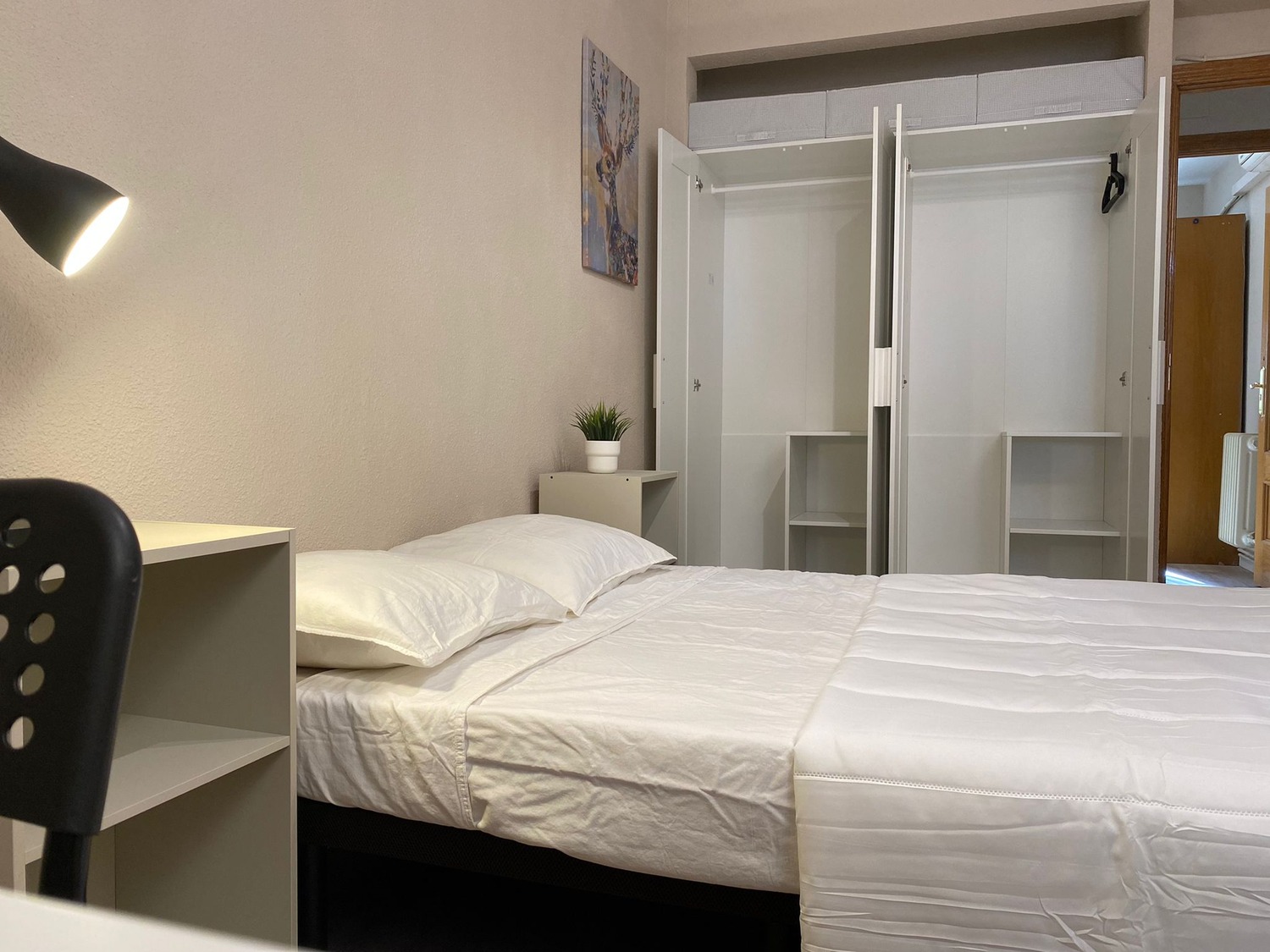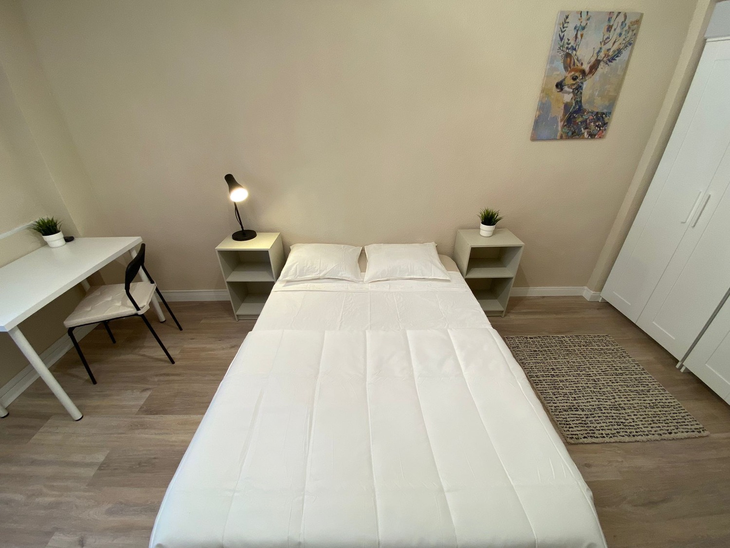 • Ubicación y zonas comunes : Capital Rooms alquila esta fantástica habitación en piso compartido, ubicada en la calle Francia 8, que pertenece al madrileño distrito de Fuenlabrada. En cuanto a las zonas comunes, la vivienda cuenta con una amplia cocina, amueblada y equipada con todos los electrodomésticos (frigorífico, vitrocerámica, lavadora, caldera/calentador eléctrico, microondas) y el menaje necesario (cacerolas, sartenes, cubertería y cristalería). Asimismo, la propiedad cuenta con un Baño completo, con plato de ducha y un aseo de cómodo acceso desde cualquier habitación. Capital Rooms realiza dos limpiezas al mes de las zonas comunes de este piso. Podrás encontrar la Renfe a dos calles de la casa, y a tres calles del metro lÍnea 12 (Fuenlabrada Central ) a solo 3 minutos de la avenida principal Avenida de las Naciones, y Calle de Móstoles, también encontrarás a una calle y media el ayuntamiento de Fuenlabrada, hay cajeros, bares y restaurantes en los alrededores, tiendas de ropa, farmacias, supermercados y un centro comercial «Plaza de la Estación» con todas marcas y un GYM. A solo unos minutos tienes parques con mucho verde para disfrutar del sol los fines de semana con amigos.