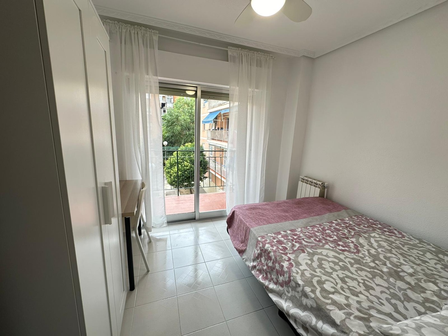 Capital Rooms ofrece!! Habitación doble con cama doble, espaciosa y luminosa, equipada con un amplio armario y un escritorio ideal para tus días de trabajo. Cuenta con ventilador de techo, calefacción individual a gas, y una terraza exterior perfecta para disfrutar del aire fresco. En cuanto a las zonas comunes no encontramos con una Cocina completamente equipada con vitrocerámica, nevera, horno microondas, lugar para comer y amplio espacio de almacenamiento por otro lado un Baño moderno con plato de ducha.