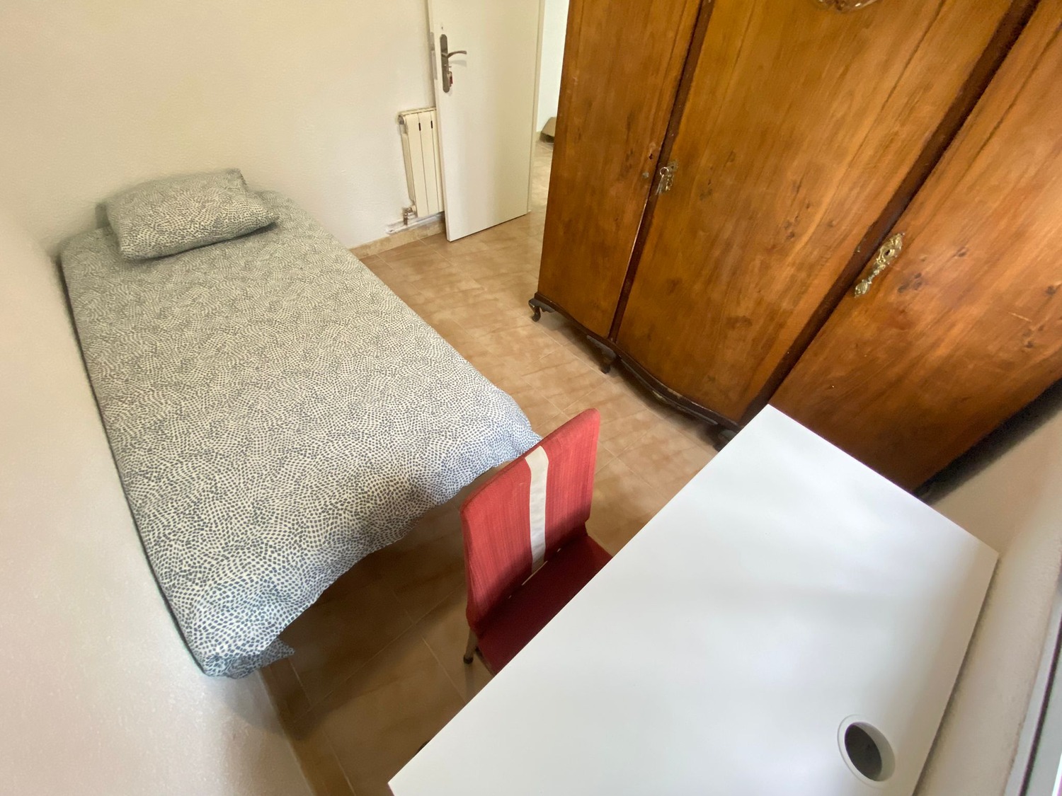 Capital Rooms, alquila esta fantástica habitación en piso compartido, una primera planta, ubicada en la calle Hornachos Nº9, que pertenece al madrileño distrito de Entrevías, El pozo. La habitación es muy luminosa y está perfectamente equipada, con los siguientes complementos: 1 cama de 0.90 m con almohada, juego de sábanas y edredón, armario, calefacción por gas natural. Todas las habitaciones incluyen conexión Wifi por fibra de alta velocidad. En cuanto a las zonas comunes, la vivienda cuenta con una amplia cocina, amueblada y equipada con todos los electrodomésticos (frigorífico, vitrocerámica, lavadora, nevera), y el menaje necesario (cacerolas, sartenes, cubertería y cristalería) Asimismo, la propiedad cuenta con un baño recientemente reformado, con plato de ducha. Capital Rooms realiza dos limpiezas mensuales de las zonas comunes. Con respecto a la ubicación de esta vivienda, se enmarca en una zona privilegiada, y por tanto provista de todo tipo de servicios: pequeño comercio, restauración, bancos, centro de salud y farmacias, biblioteca nacional, además cuenta con el parque forestal de entrevías, es una zona verde de 497 213 m² situada en el barrio de Entrevías, al sur del distrito Puente de Vallecas con arbolado consolidado, en su mayoría coníferas. Esta calle está a sólo 11 minutos de la estación de Renfe El Pozo, donde se distribuyen muchas líneas (C-2, C-7 y C-8 de cercanías de Madrid) a 18 minutos de la puerta de Atocha, a 25 minutos de la puerta del Sol y con una excelente comunicación con el extra radio (M31/M40) La zona, además, cuenta con el paso de varias líneas de autobús en las proximidades.