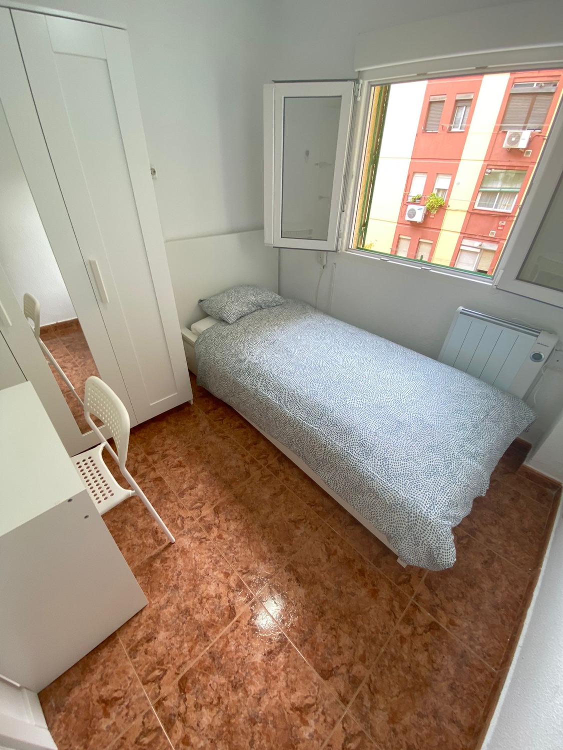 Piso compartido de 4 habitaciones en una ubicación privilegiada del madrileño distrito de Numancia. La vivienda se ubica en la Calle Lopez Grass 66, en un enclave estratégico de comunicaciones, muy próxima a la Avenida Albufera, parada de metro en línea 1 a 750 metros (Metro Nueva Numancia) con todo tipo de servicios y comercios de barrio, mercados, bares y varios comercios de servicios, numerosas zonas verdes y de ocio, escuelas, etc. La habitación está perfectamente equipada, con los siguientes complementos: 1 cama de 0,90 m con almohada, juego de sábanas y edredón, escritorio con silla, un espacioso armario y calefacción individual eléctrica. En cuanto a las zonas comunes, la vivienda cuenta con una cocina recién reformada, amueblada y equipada con todos los electrodomésticos frigorífico, vitrocerámica, lavadora, microondas además del menaje básico necesario, cacerolas, sartenes, cubertería y cristalería. El baño cuenta con plato de ducha, compartido para las cuatro habitaciones.