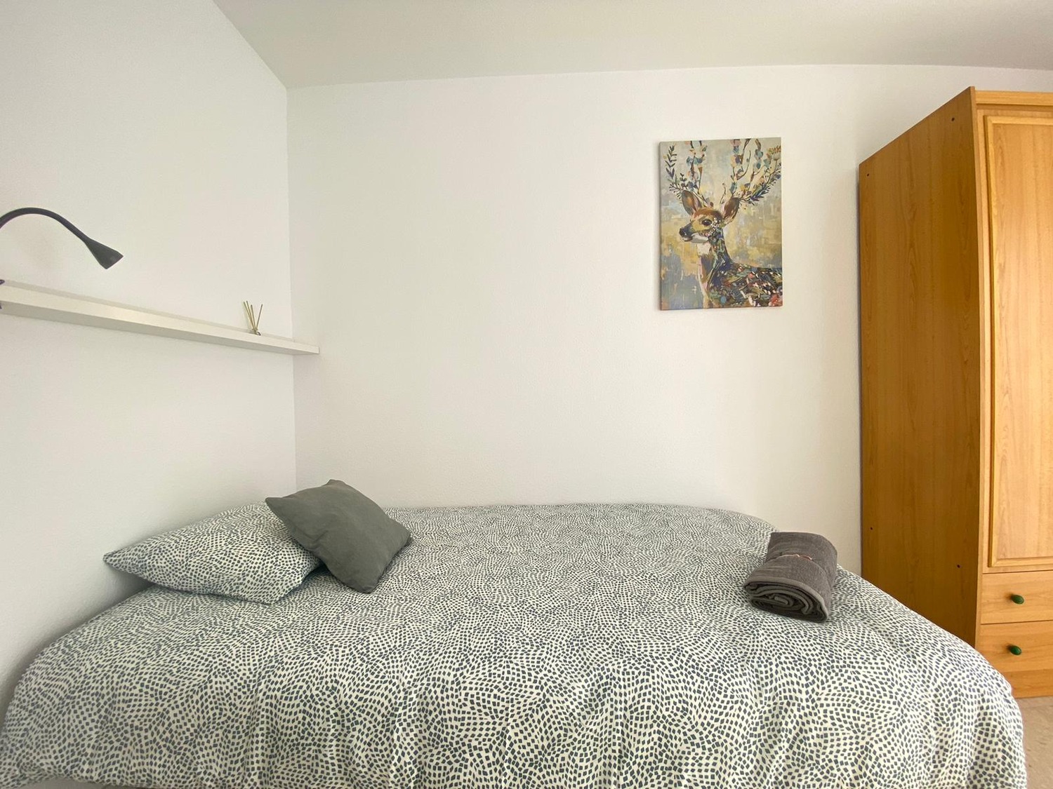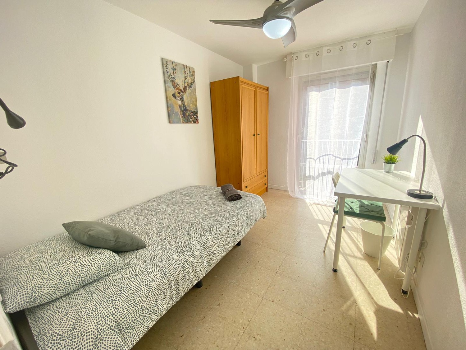 En la publicación podemos apreciar esta hermosa habitación INDIVIDUAL es exterior, luminosa y está perfectamente equipada con los siguientes complementos: 1 cama de 1,05 m con almohadas, juego de sábanas, toalla y edredón, escritorio de trabajo o estudio, balda con lámpara, varios enchufes y un espacioso armario, calefacción individual eléctrica y ventilador de techo.