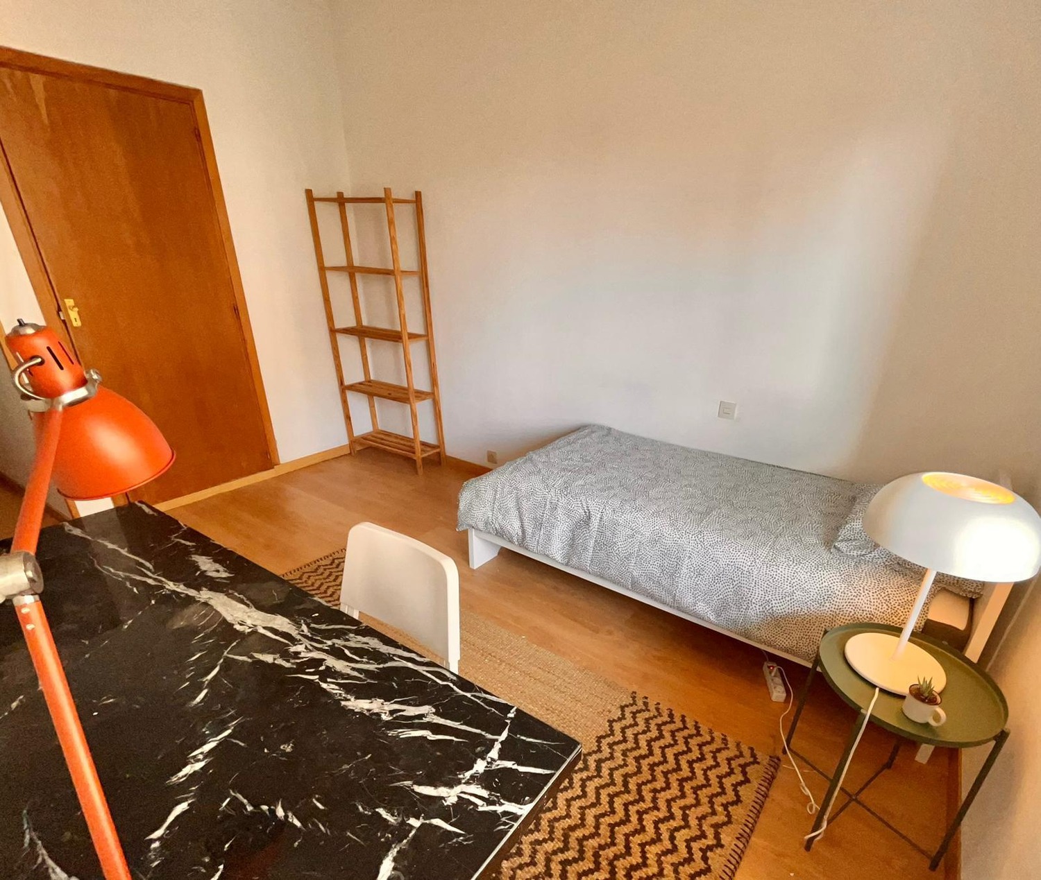 La habitación es luminosa y bien ventilada, equipada con mobiliario moderno y funcional, incluyendo un espacio de estudio con escritorio y silla, así como un amplio armario. El piso compartido cuenta con una cocina totalmente equipada con electrodomésticos modernos, una sala de estar acogedora y confortable, y un baño compartido con ducha. Además, ofrece conexión a internet de alta velocidad y servicio de limpieza en las áreas comunes.