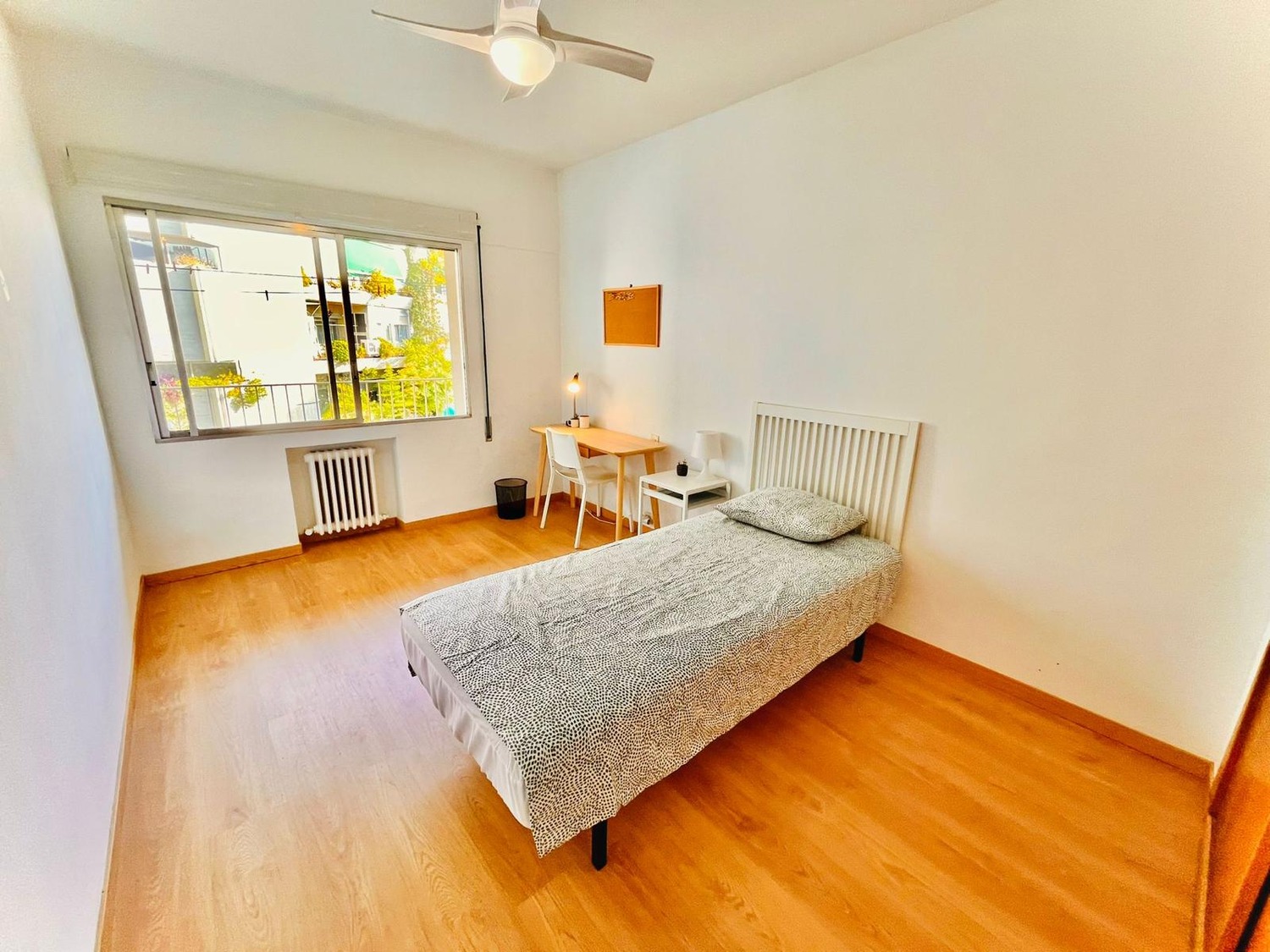 La habitación es luminosa y bien ventilada, equipada con mobiliario moderno y funcional, incluyendo un espacio de estudio con escritorio y silla, así como un amplio armario. El piso compartido cuenta con una cocina totalmente equipada con electrodomésticos modernos, una sala de estar acogedora y confortable, y un baño compartido. Además, ofrece conexión a internet de alta velocidad y servicio de limpieza en las áreas comunes.