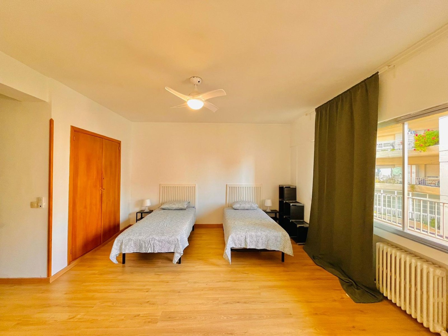 La habitación es luminosa y bien ventilada, equipada con mobiliario moderno y funcional, con dos camas individuales, incluyendo un espacio de estudio con escritorio y silla, así como un amplio armario. El piso compartido cuenta con una cocina totalmente equipada con electrodomésticos modernos, una sala de estar acogedora y confortable, y un baño privado, para mayor comodidad. Además, ofrece conexión a internet de alta velocidad y servicio de limpieza en las áreas comunes.