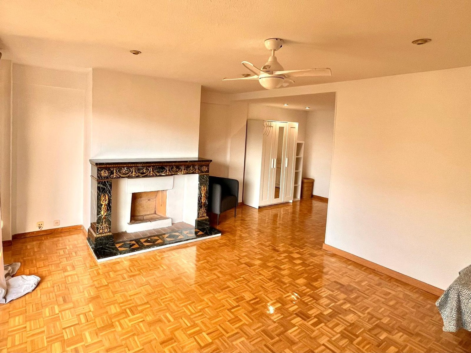 La habitación es luminosa y bien ventilada, equipada con mobiliario moderno y funcional, incluyendo un espacio de estudio con escritorio y silla, así como un amplio armario. El piso compartido cuenta con una cocina totalmente equipada con electrodomésticos modernos, una sala de estar acogedora y confortable, y un baño compartido con ducha. Además, ofrece conexión a internet de alta velocidad y servicio de limpieza en las áreas comunes.