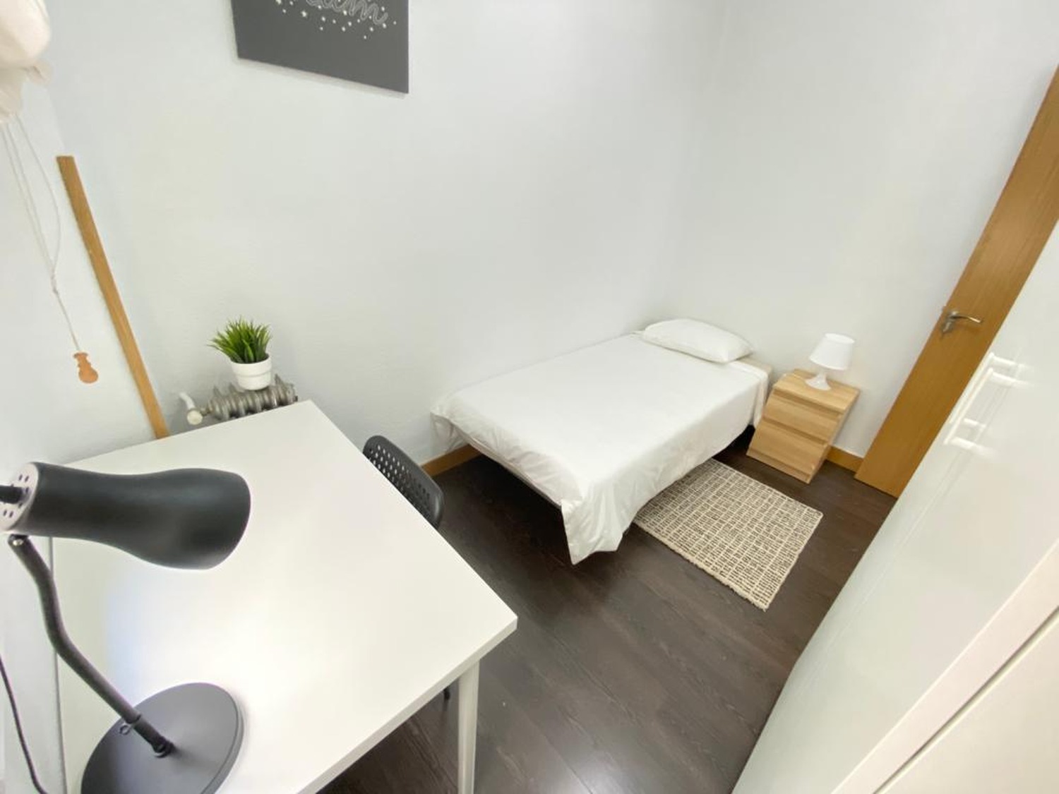 La habitación es muy luminosa y está perfectamente equipada, con los siguientes complementos: 1 cama de 0.90 m con almohada, juego de sábanas y edredón, mesitas de noche con lámpara, armario con espejo, escritorio con silla, perchero de pared, calefacción eléctrica. Todas las habitaciones incluyen conexión wifi por fibra de alta velocidad.