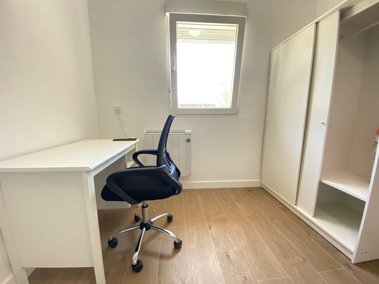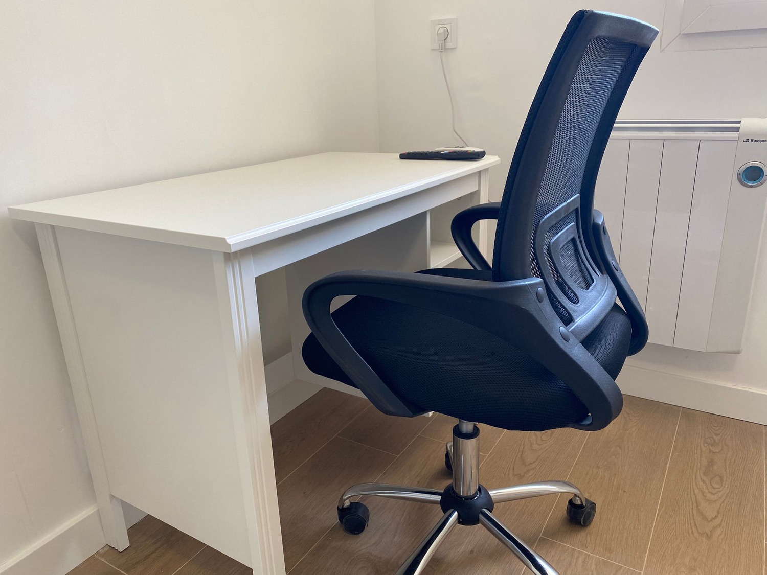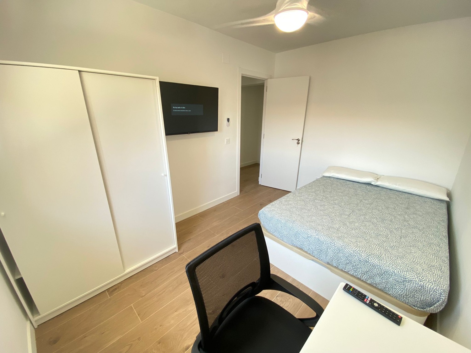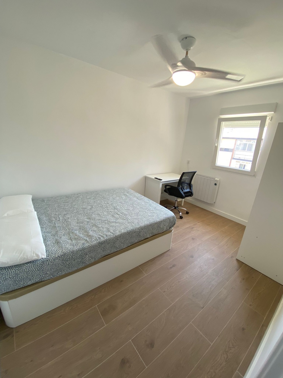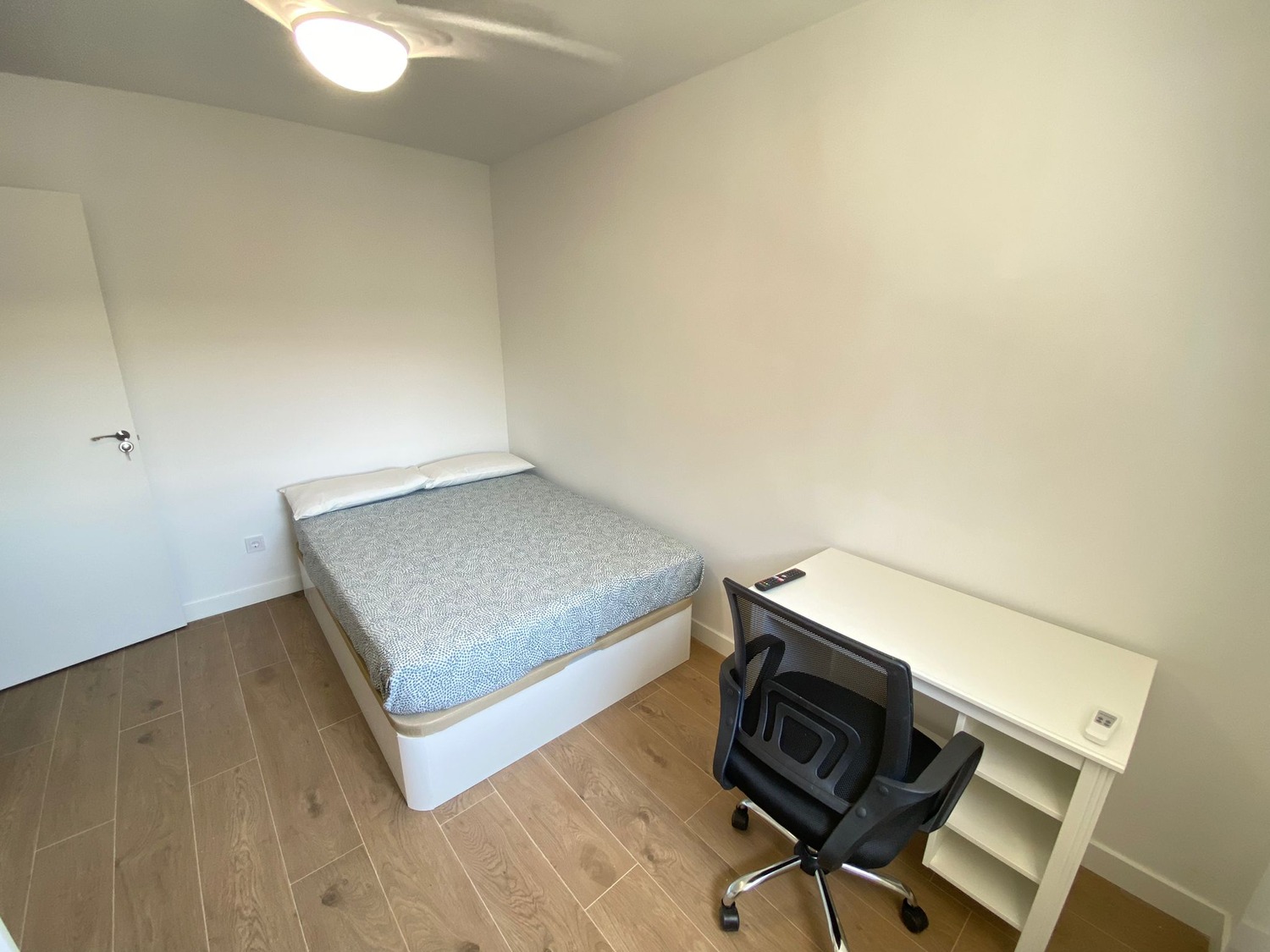 ¡Bienvenidos a la casa de estudiantes “Villaverde” ¡Estupenda habitación privada en alojamiento de estudiantes reformado en 2023, a estrenar! Alquilamos esta habitación privada, perfectamente acondicionada y con iluminación natural, con una superficie aproximada de 12m2. Cuenta con un escritorio cómodo con flexo, un televisor con Smart tv, una silla de conferencia. El mobiliario se completa con un armario de 1,55m —en cuyo interior incluye una barra para las perchas— ventilador de techo con mando a distancia y calefacción por eléctrica, la cama de ancho 1,35 m canapé abatible.