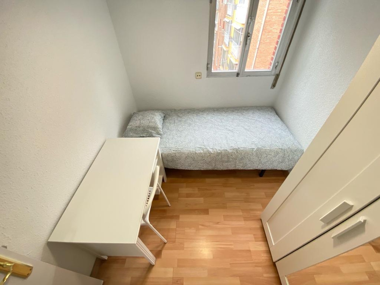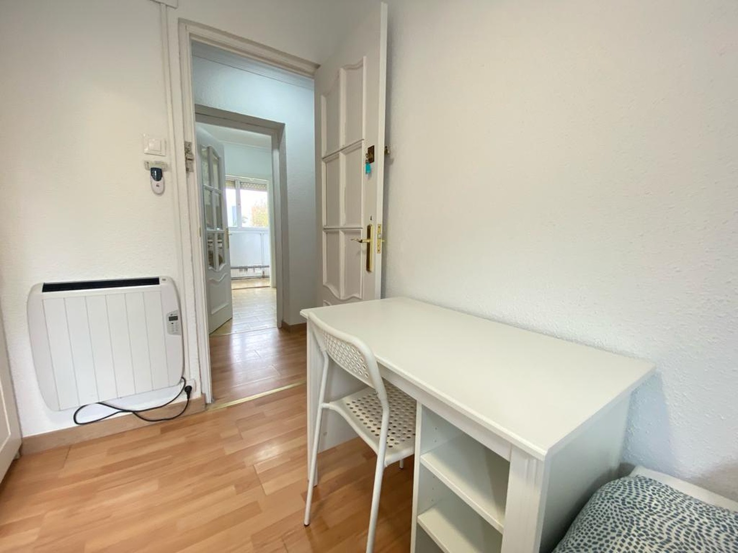 Alquilamos esta habitación privada, perfectamente acondicionada y con iluminación natural, con una superficie aproximada de 10m2. Cuenta con un escritorio cómodo con silla. El mobiliario se completa con un armario de 1,55m —en cuyo interior incluye una barra para las perchas— ventilador de techo con mando a distancia y calefacción por eléctrica, la cama de ancho 1,05cm.