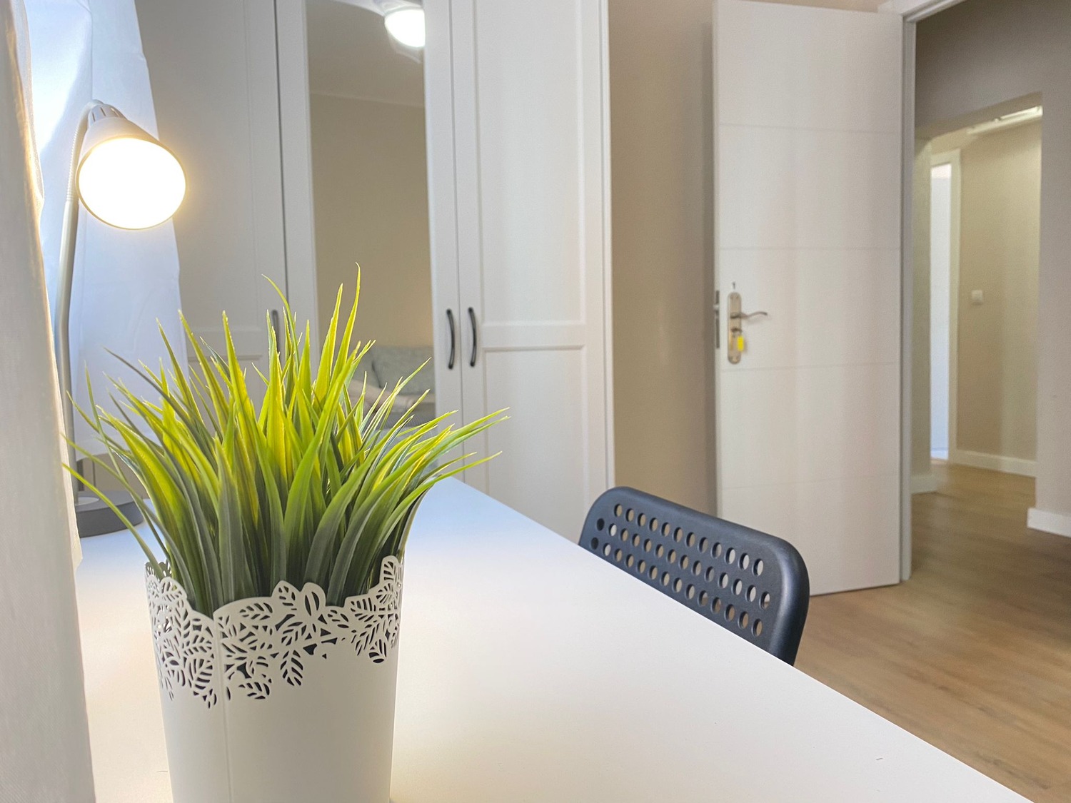 Todas las habitaciones incluyen conexión wifi por fibra de alta velocidad. En cuanto a las zonas comunes, la vivienda cuenta con una amplia cocina, amueblada y equipada con todos los electrodomésticos (frigorífico, cocina , lavadora, caldera/calentador eléctrico, microondas) y el menaje necesario (cacerolas, sartenes, cubertería y cristalería). Asimismo, la propiedad cuenta con dos Baños completos.