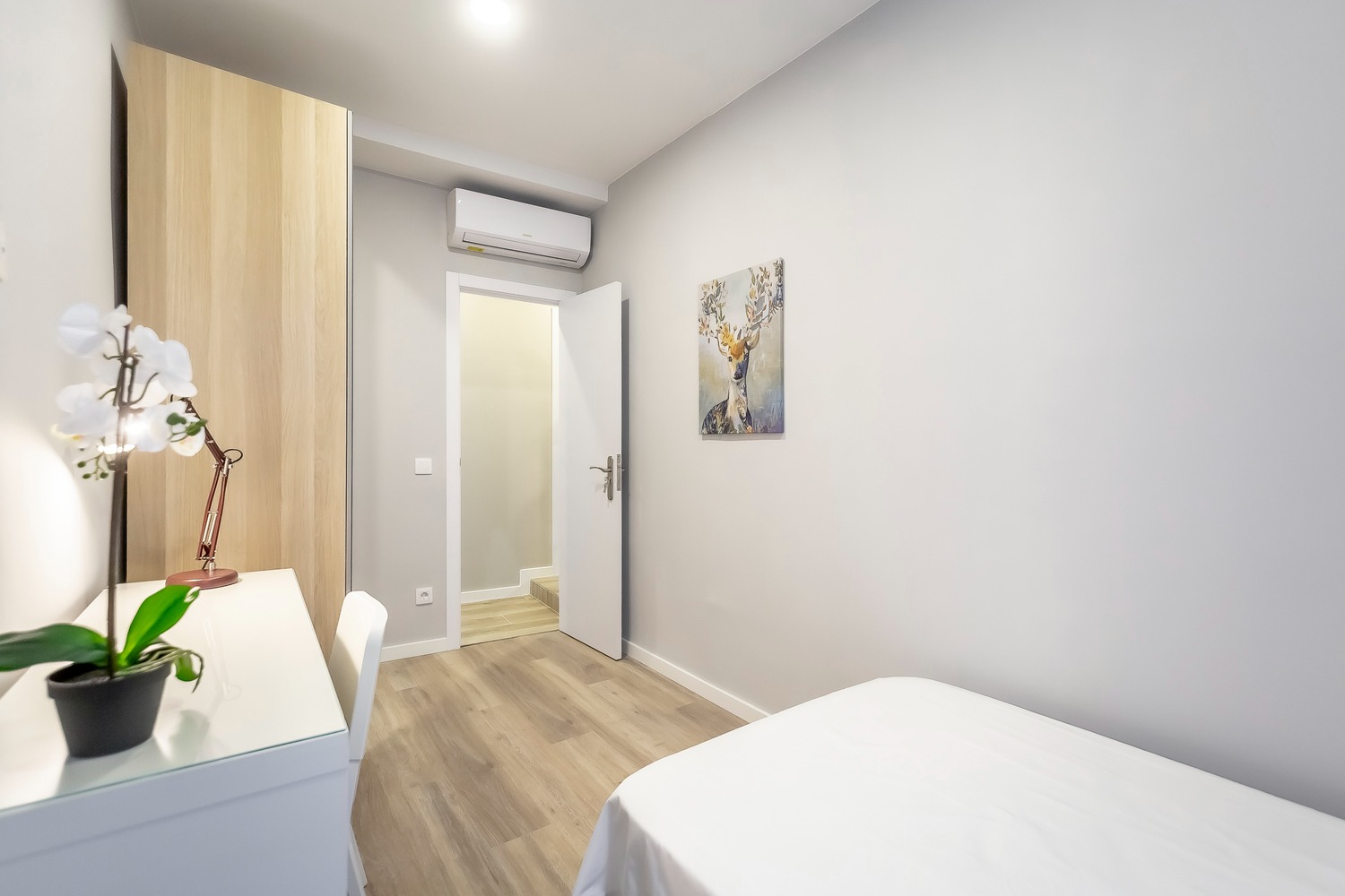 • Ubicación y zonas comunes : Bienvenidos a la Casa de estudiantes Canfranc’s!!! Vive la mejor experiencia estudiantil con nosotros!!! Nuestro propósito es cubrir las necesidades de alojamiento a universitarios y opositores en Madrid y su área metropolitana. La residencia está organizada en un total de 14 habitaciones individuales, cada una de ellas de 8 m2. La limitación de plazas tiene como objetivo promover una convivencia familiar, así como una atención personalizada a cada estudiante. Todas las habitaciones disponen de luz natural, modernas, acogedoras y funcionales. Además cuentan con una cama, mesa de noche, escritorio, silla, armario, aire acondicionado, calefacción por gas natural y Smart tv. Situado en la Avenida Albufera y a escasos metros de la boca de Metro Nueva Numancia (L1), en una ubicación estratégica por la proximidad a varios campus universitarios, ponemos a tu disposición un espacio de 280 m2 que cubrirá todas tus necesidades. Queremos convertir Canfranc’s Residence en tu nuevo hogar, para que disfrutes de la autonomía y el confort que brinda un piso de estudiante, con todos los servicios incluidos!