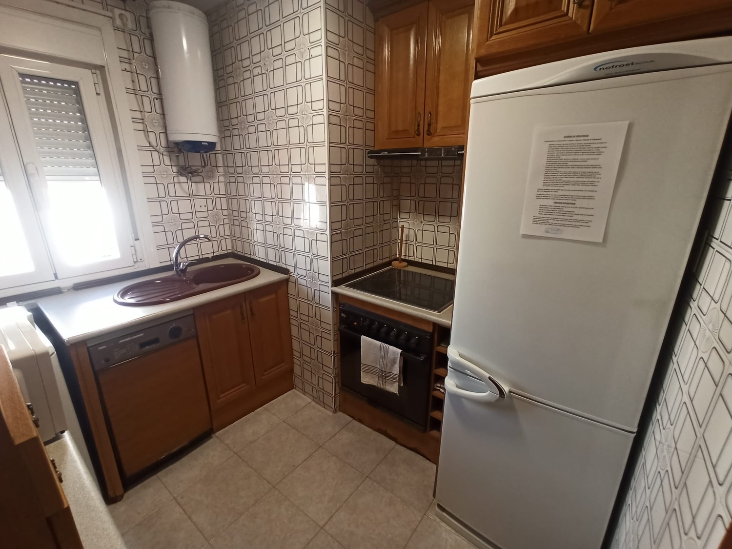 En cuanto a las zonas comunes, la vivienda cuenta con salón y una amplia cocina, amueblada y equipada con todos los electrodomésticos (frigorífico, vitrocerámica, lavadora, nevera, microondas), y todo el menaje necesario para que no tengas que preocuparte por nada mas (cacerolas, sartenes, cubertería, utensilios de cocina, etc..) La casa es muy luminosa gracias a su orientación exterior. El piso dispone de un amplio baño completo, con plato de ducha.