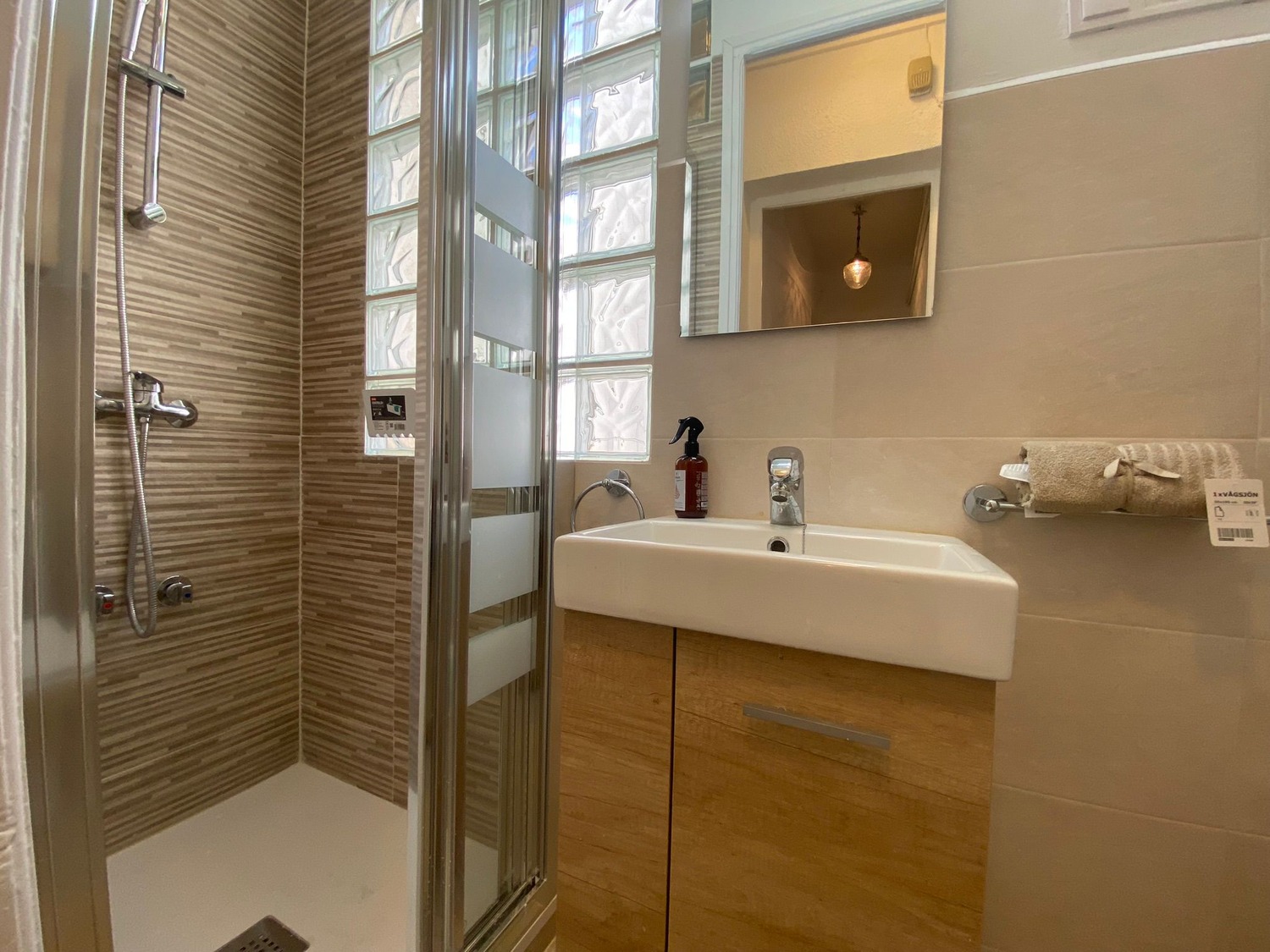 En cuanto a las zonas comunes nos encontraremos con un baño compartido con plato de ducha, cocina perfectamente equipada que cuenta con nevera, microondas y espacio para comer.