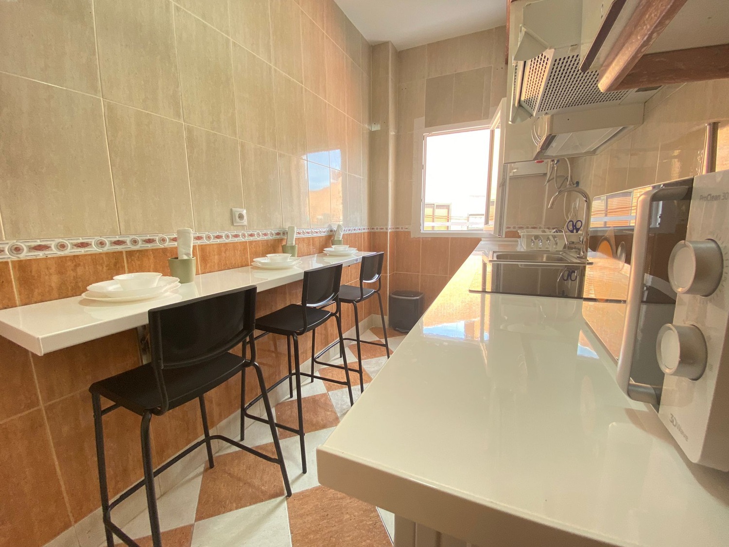 En cuanto a las zonas comunes, la vivienda cuenta con una amplia cocina, amueblada y equipada con todos los electrodomésticos (frigorífico, vitrocerámica, lavadora, microondas) y el menaje necesario (cacerolas, sartenes, cubertería y cristalería). Asimismo, la propiedad cuenta con un Baño completo.