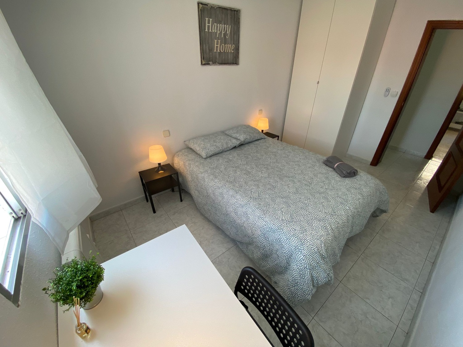 Capital Rooms alquila habitación en piso compartido, es luminosa está perfectamente equipada, con los siguientes complementos: 1 cama 1,34 con almohadas, juego de sábanas y edredón, dos mesitas de noche con lámpara, un espacioso armario, calefacción por gas eléctrico individual y cerramientos de doble cristal con las mejores calidades.