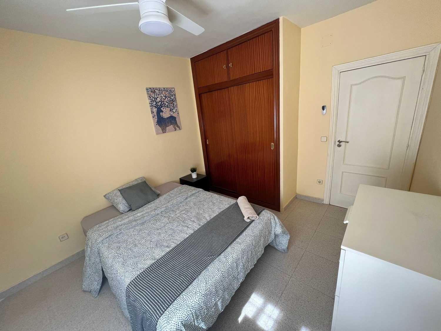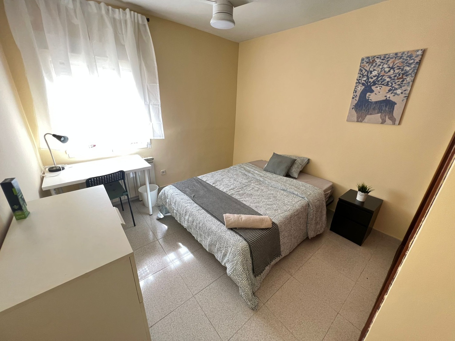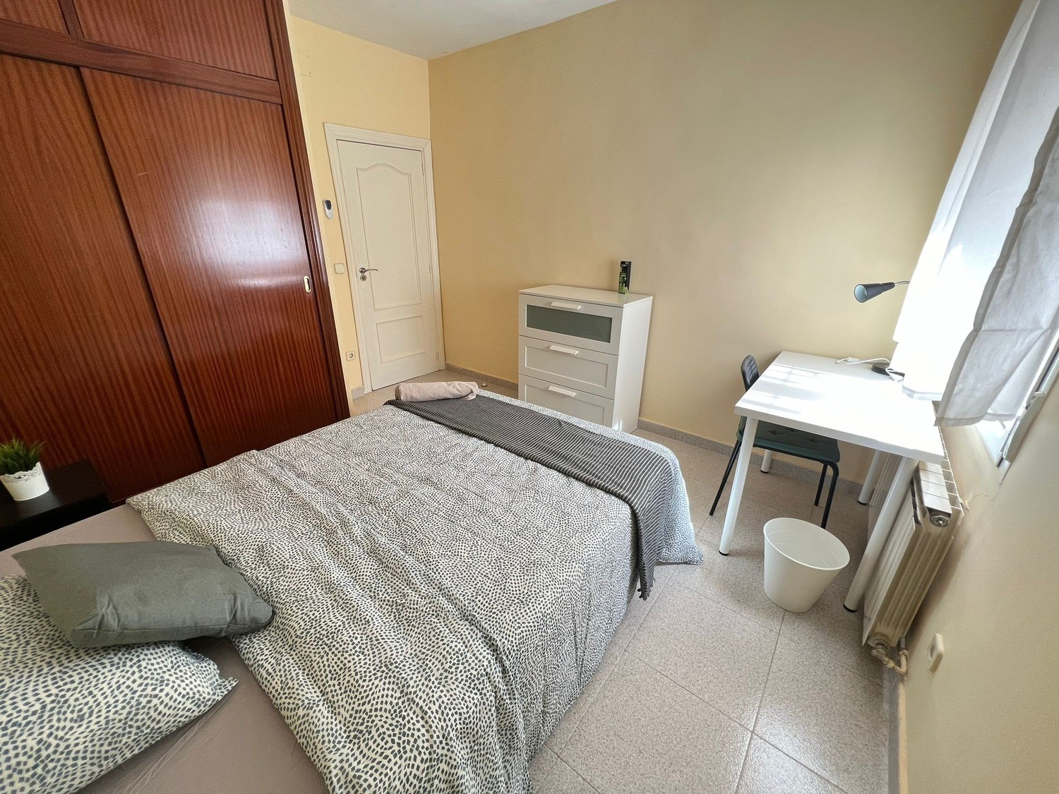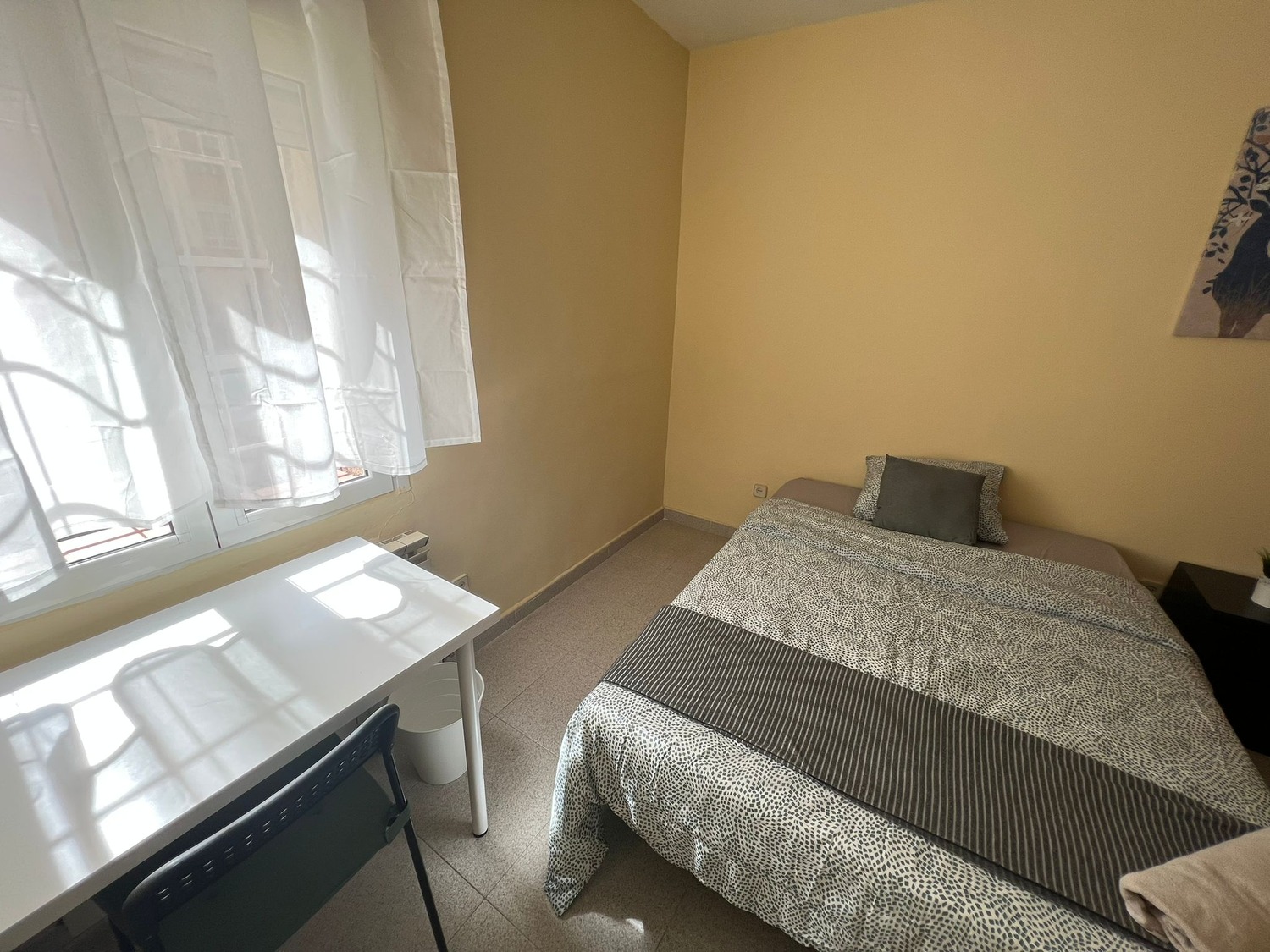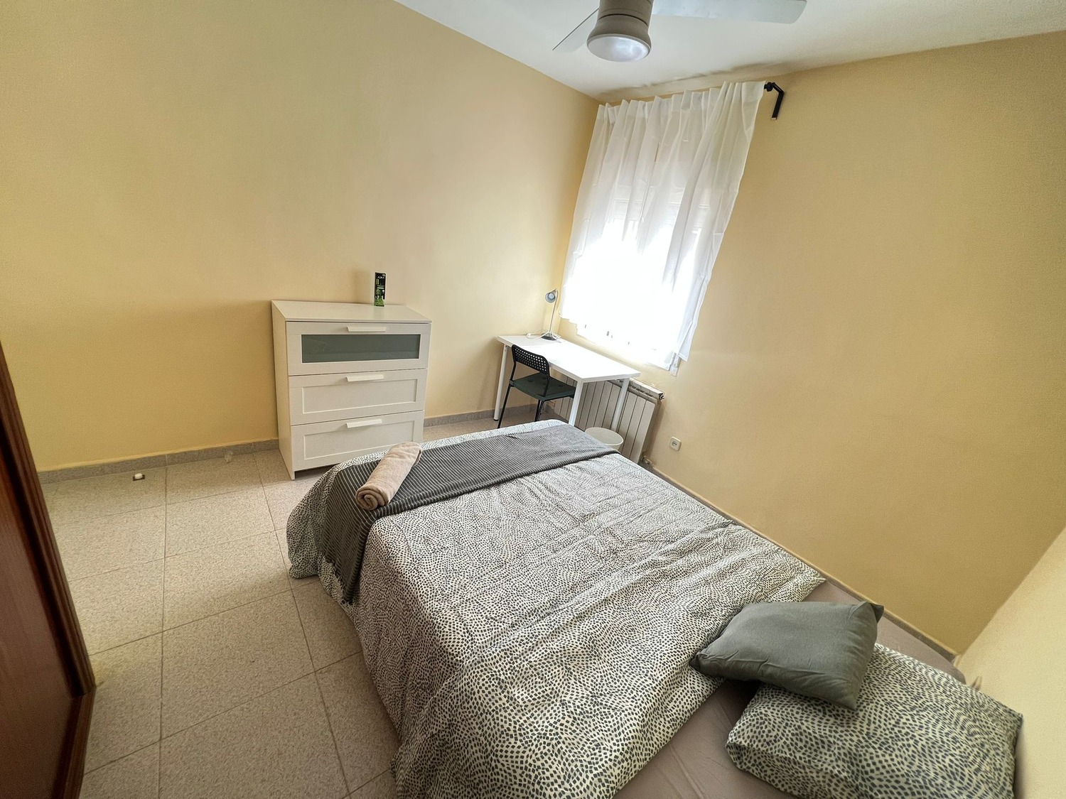 • Ubicación y zonas comunes : Rooms.madrid alquila esta fantástica habitación en piso compartido, solo para mujeres, ubicado en la CALLE PAN Y TORO, situado en el madrileño barrio de Villa Verde, una zona muy concurrida y bien comunicada a 3 minutos andando del metro Ciudad de los Angeles, Linea 3 (Amarilla). Se encuentra ubicada en la intersección de la Avenida de Andalucía con la Calle Generosidad. Da servicio a los barrios de Ciudad de Los Ángeles y El Espinillo. Es la parada más cercana a la Comisaría de la Policía Nacional y al centro comercial Los Ángeles, con comunicación directa a CIUDAD UNIVERSITARIA (30 minutos), se encuentra a 20 minutos de Sol, con parada de autobús a una calle del portal — líneas 22. 79. 59. 85. 411, entre otras, con un supermercado DIA en la esquina y una comisaría de Policía muy próxima, bares, restaurantes y con todo tipo de servicios de la zona sur de Madrid. odas las habitaciones incluyen cerradura con llave privada conexión wifi por fibra de alta velocidad, CUENTA TAMBIEN CON UN ESCRITORIO DOBLE. Rooms Madrid realiza una limpieza mensual de las zonas comunes En cuanto a las zonas comunes, la vivienda cuenta con una amplia cocina, amueblada y equipada con todos los electrodomésticos (frigorífico, cocina, lavadora, microondas) y el menaje necesario (cacerolas, sartenes, cubertería y cristalería). Un salón luminoso con una mesa y tres sillas. Y un baño con plato de ducha, cómodo y amplio compartido para las 3 habitaciones.
