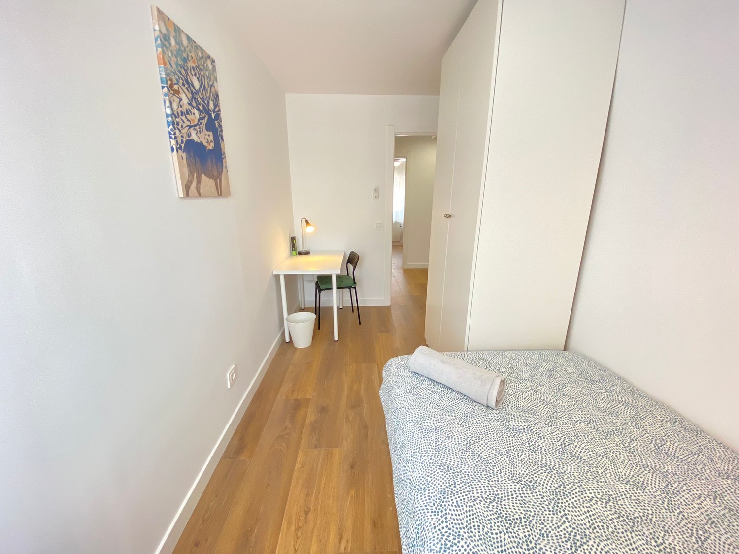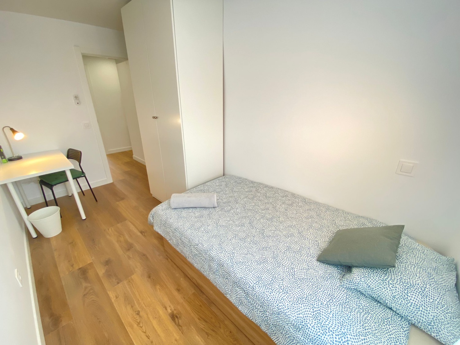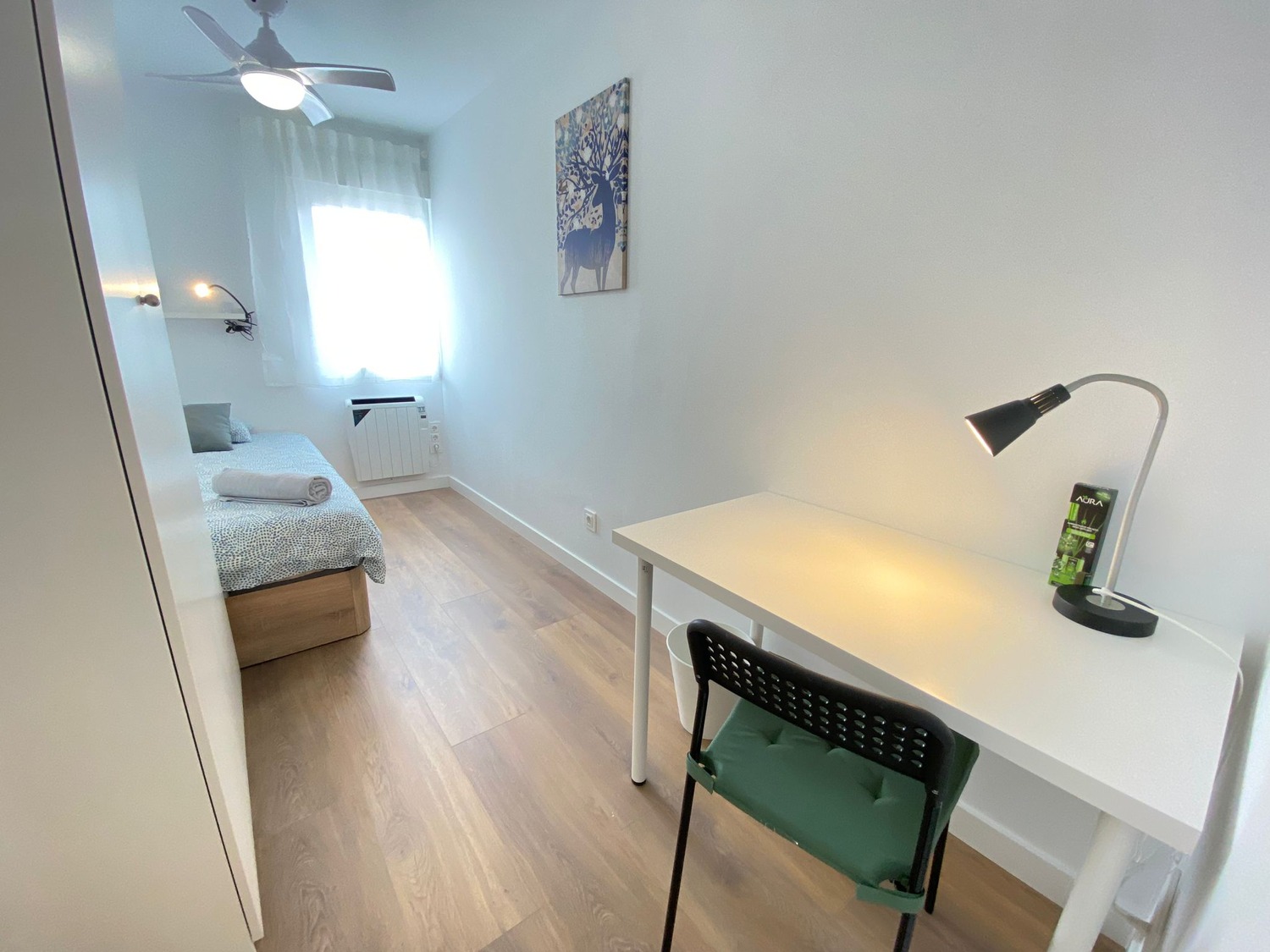 La habitación es muy luminosa, está perfectamente equipada, con los siguientes complementos: cama de 0,90 m con almohada, ropa de cama al completo, edredón, armario con divisores, cuenta con escritorio y silla, calefacción por eléctrica.