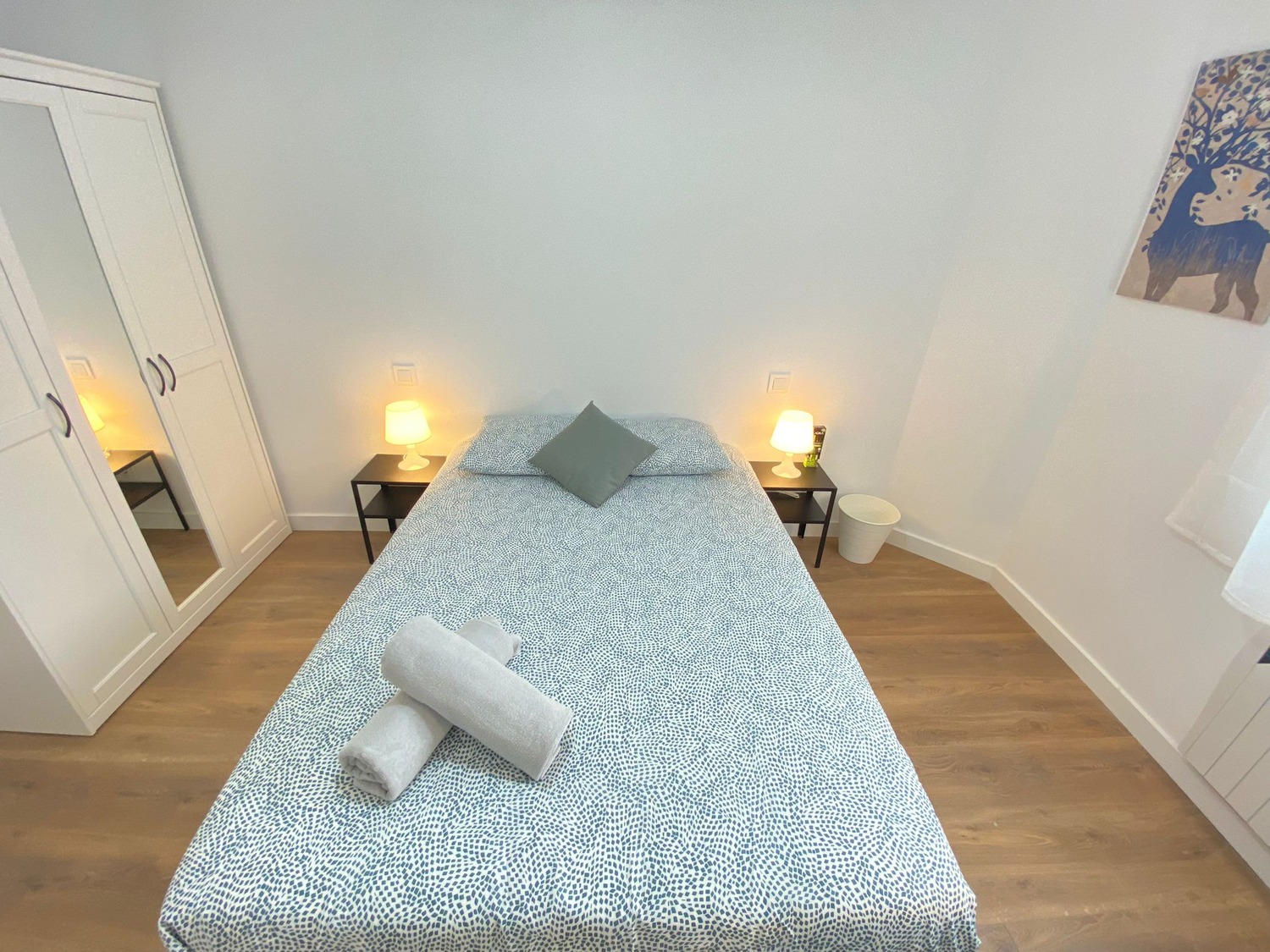La habitación es muy luminosa, está perfectamente equipada, con los siguientes complementos: cama de 1,35 m con 2 almohadas, ropa de cama al completo, edredón, armario con divisores, cuenta con escritorio y silla, calefacción por eléctrica.