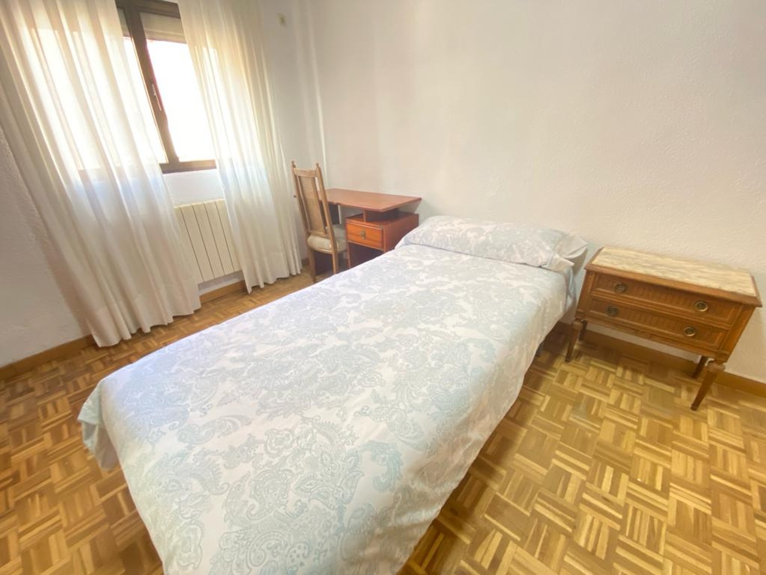 La habitación es muy luminosa y está perfectamente equipada, con los siguientes complementos: 1 cama de 1.05 cm con almohada, ropa de cama al completo, edredón, cuenta con una mesita de noche con lámpara, armarios empotrados, calefacción por gas natural.
