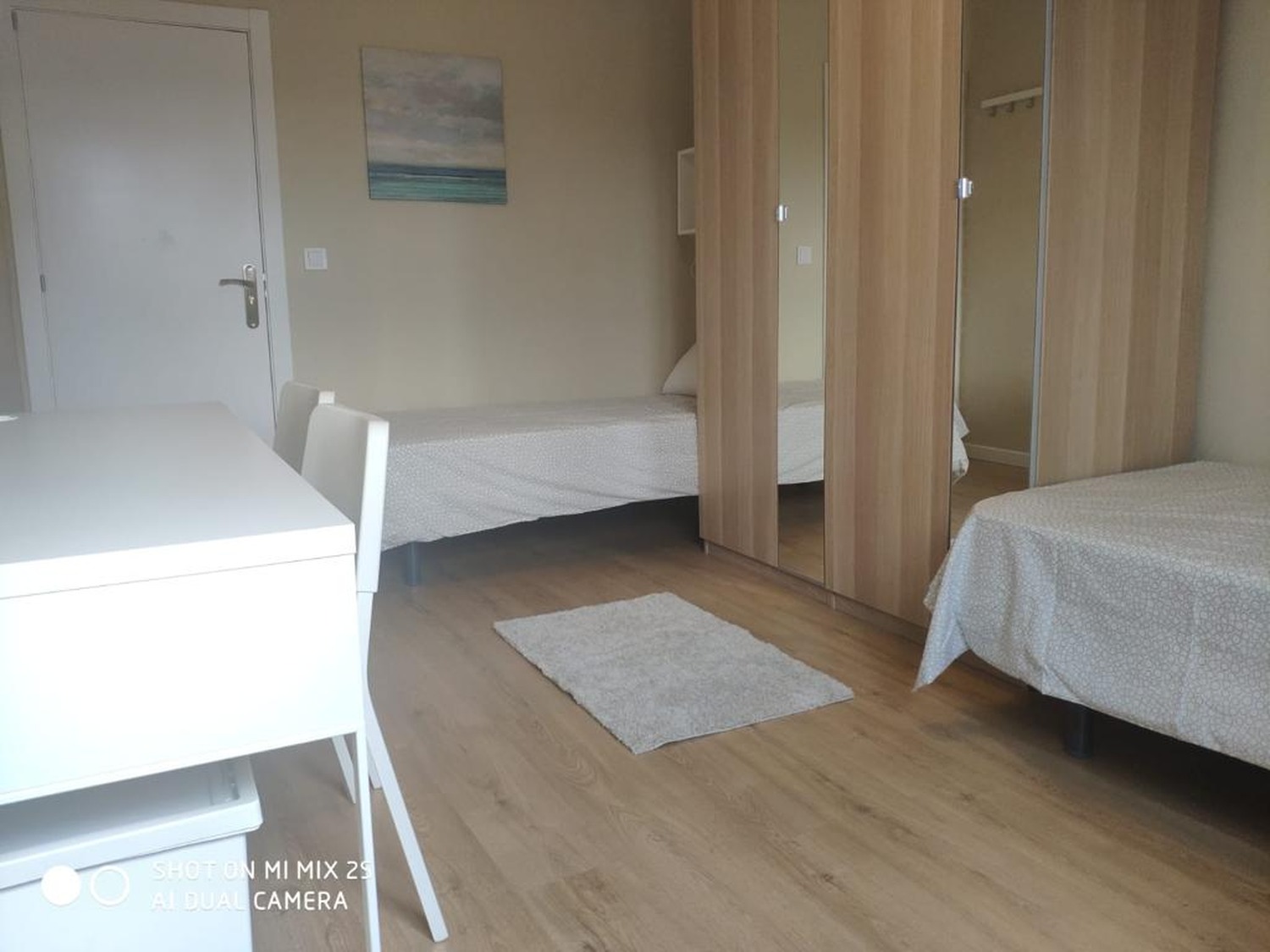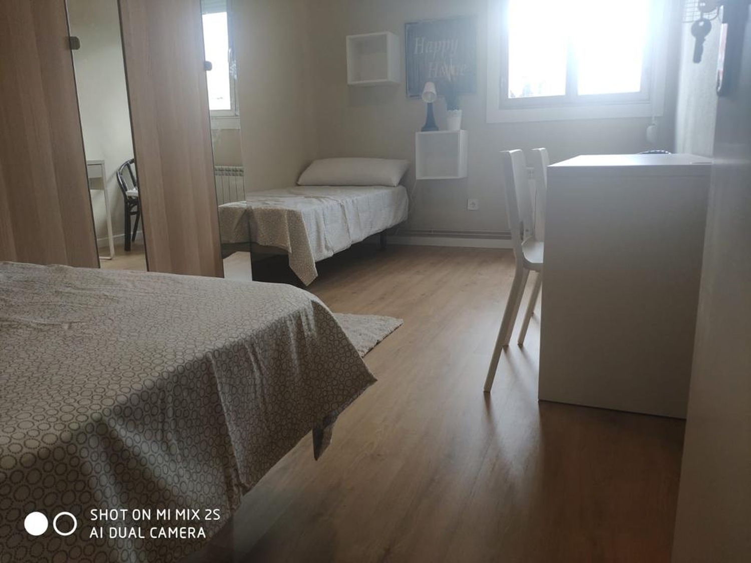 Excelente habitación en piso compartido para estudiantes, cuenta con 2 camas individuales de 1,05cm, una mesa de noche con lampara, un escritorio cristalizado con silla para tus horas de estudioo trabajo desde casa, un armario amplio, una de las grandes ventajas es la ubicacion, se encuentra a 2 minutos de avenida La Albufera, al lado de la estación del metro de Nueva Numancia linea 1 y lineas de autobus, supermecados, bancos y comercio; a 8 minutos de la estacion de Puerta de Atocha y a 11 minutos de la Puerta del Sol, piso muy acogedor, excelente convivencia.