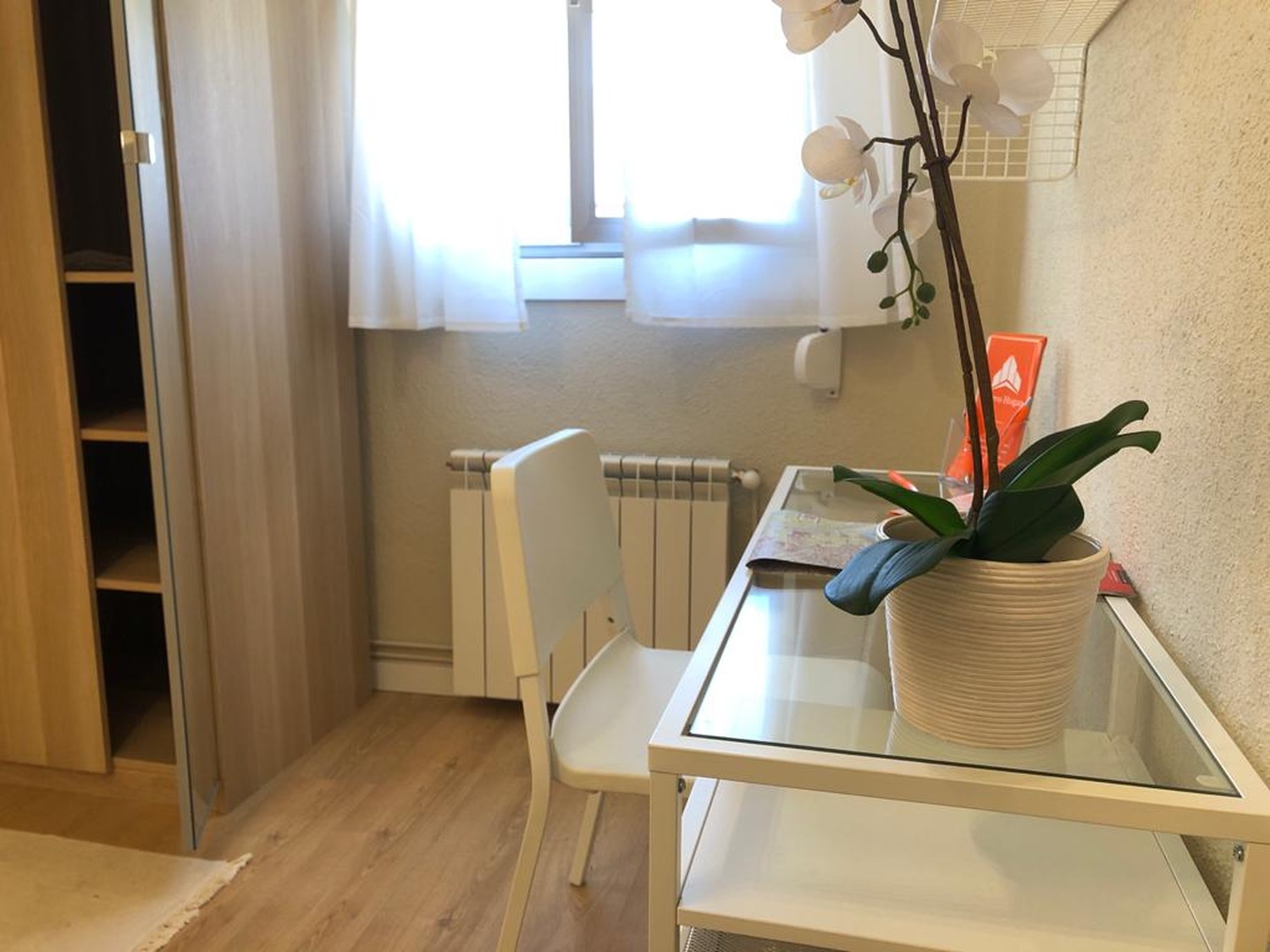 Excelente habitación en piso compartido para estudiantes, cuenta con una cama individual de 1,05cm, una mesa de noche con lampara, un escritorio cristalizado con silla para tus horas de estudio trabajo desde casa, un armario amplio, una de las grandes ventajas es la ubicación, se encuentra a 2 minutos de avenida La Albufera, al lado de la estación del metro de Nueva Numancia Linea 1 y líneas de autobús, supermercados, bancos y comercio; a 8 minutos de la estación de Puerta de Atocha y a 11 minutos de la Puerta del Sol, piso muy acogedor, excelente convivencia.