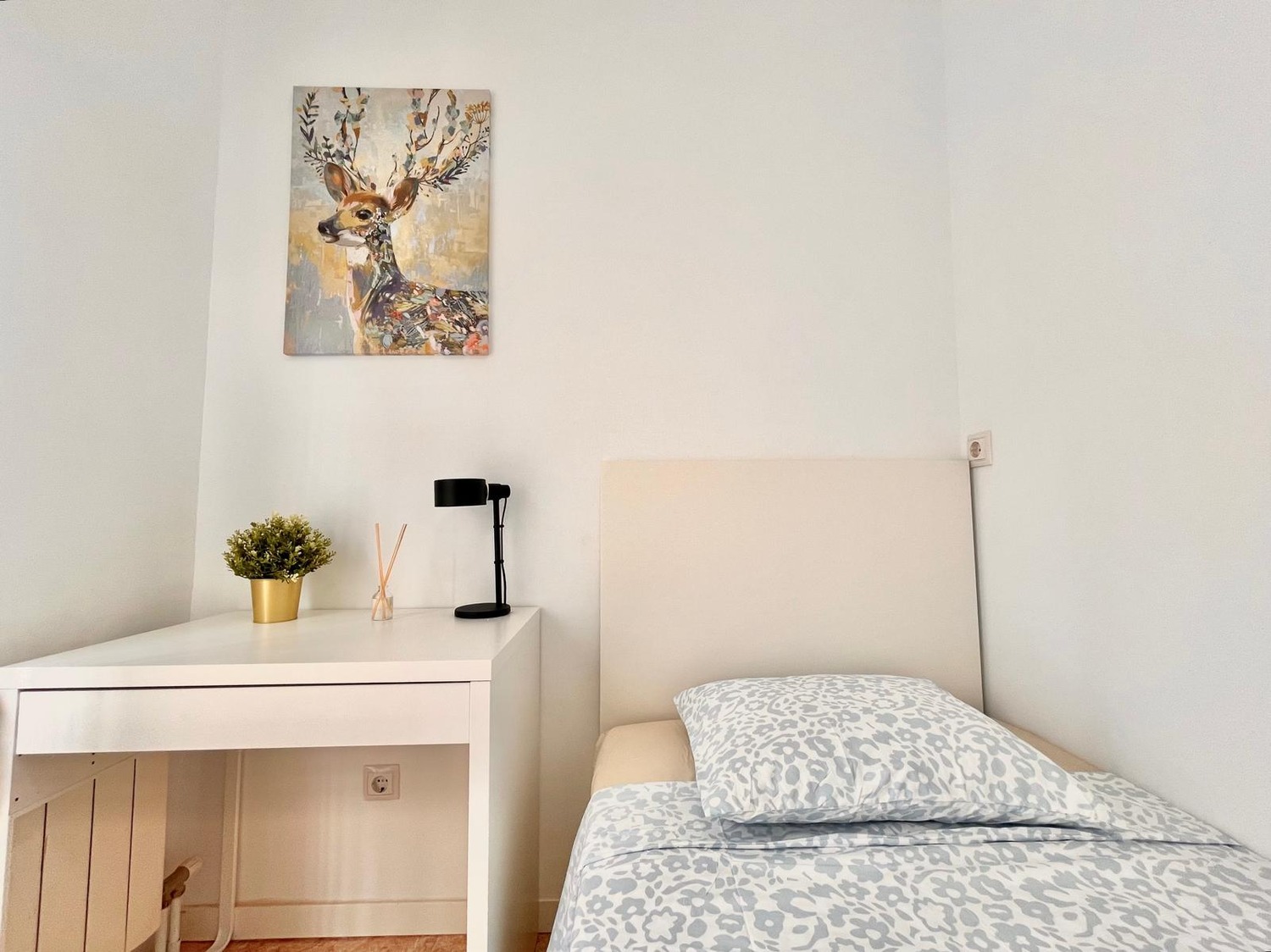 Esta habitación individual en piso compartido, diseñadas para brindarte comodidad y tranquilidad. La habitación es exterior y cuenta con abundante luz natural, creando un ambiente cálido y acogedor. Está equipadas con todo lo que necesitas: un escritorio para tus estudios o trabajo, un armario para tu ropa y pertenencias, y una lámpara de noche que añade un toque de comodidad.